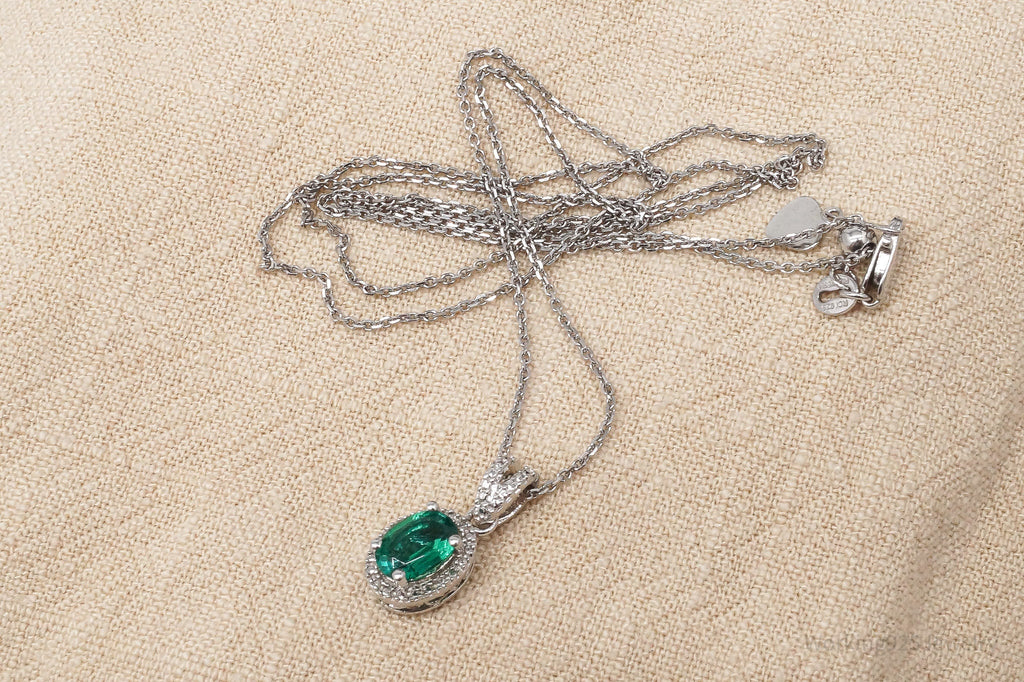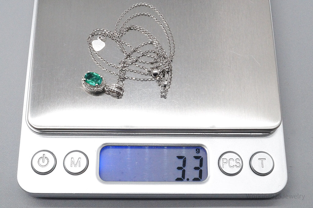 Vintage Lab Emerald Diamond Sterling Silver Necklace 22" Adjustable