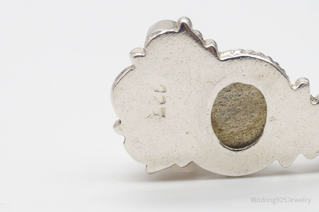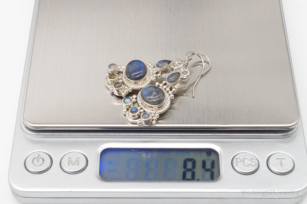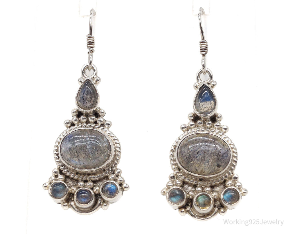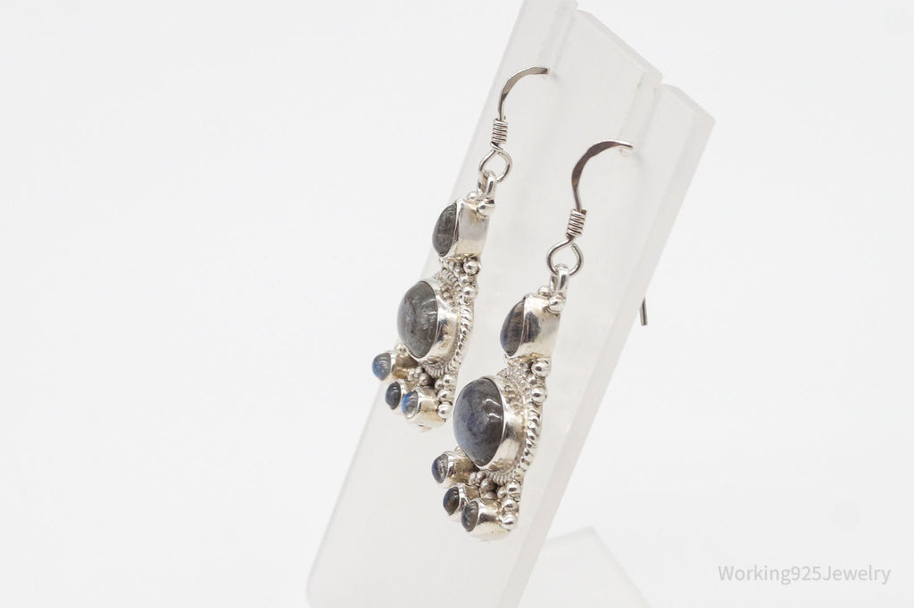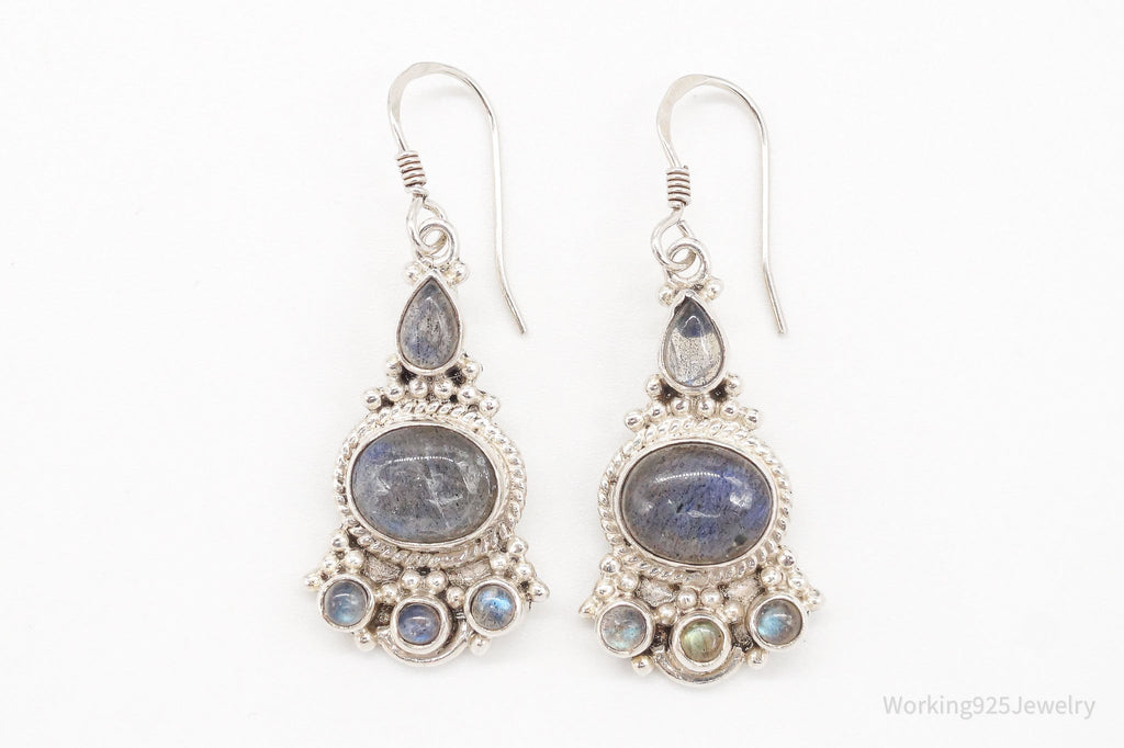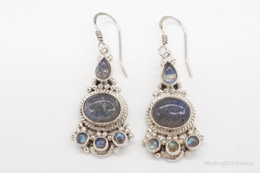 Vintage Labradorite Bali Inspired Filigree Sterling Silver Earrings