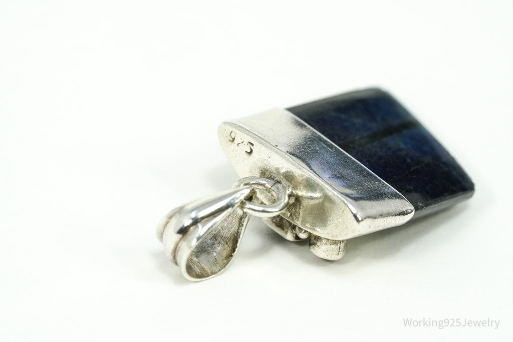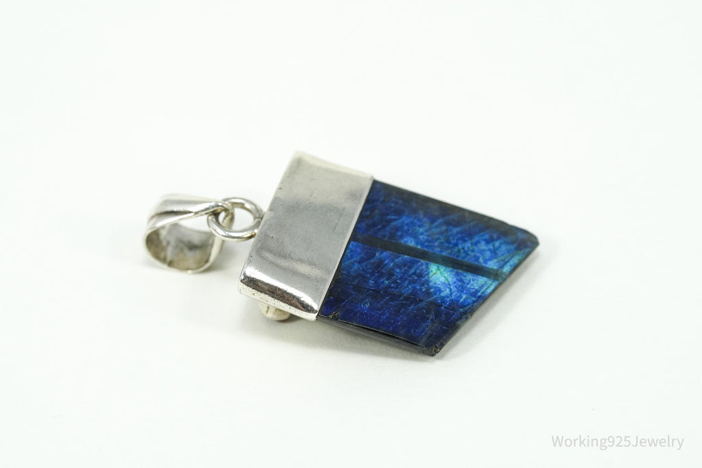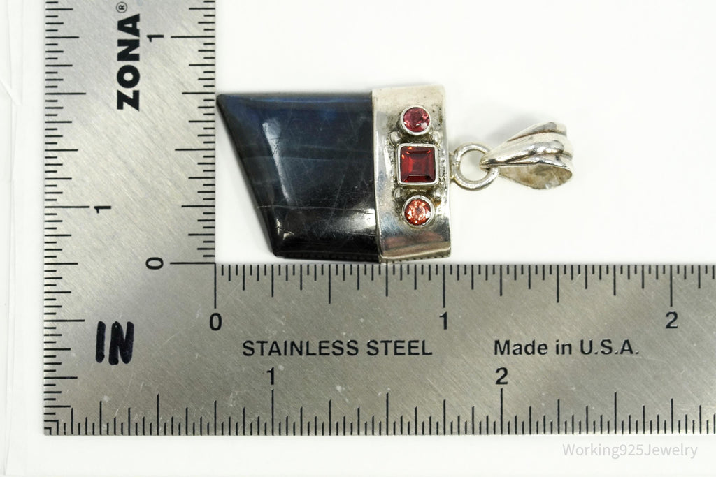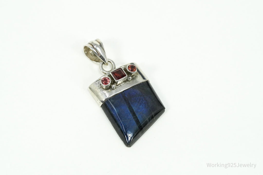 Vintage Labradorite & Garnet Sterling Silver Necklace Pendant 1 5/8"