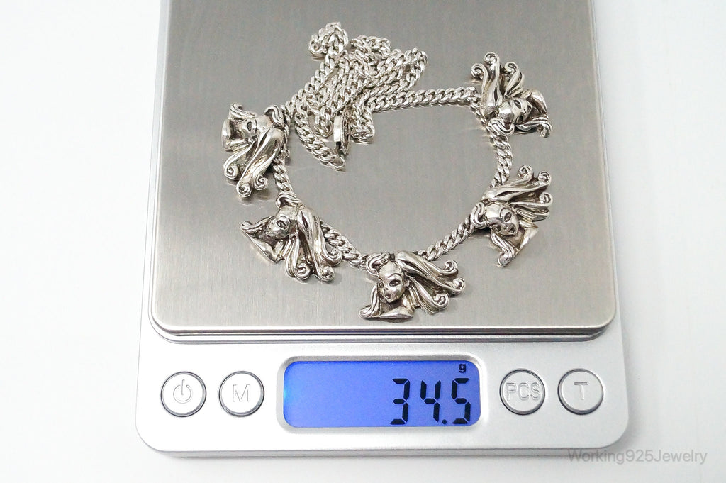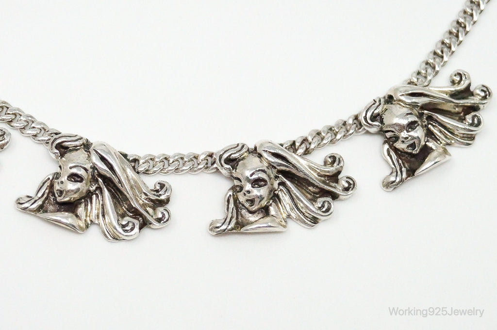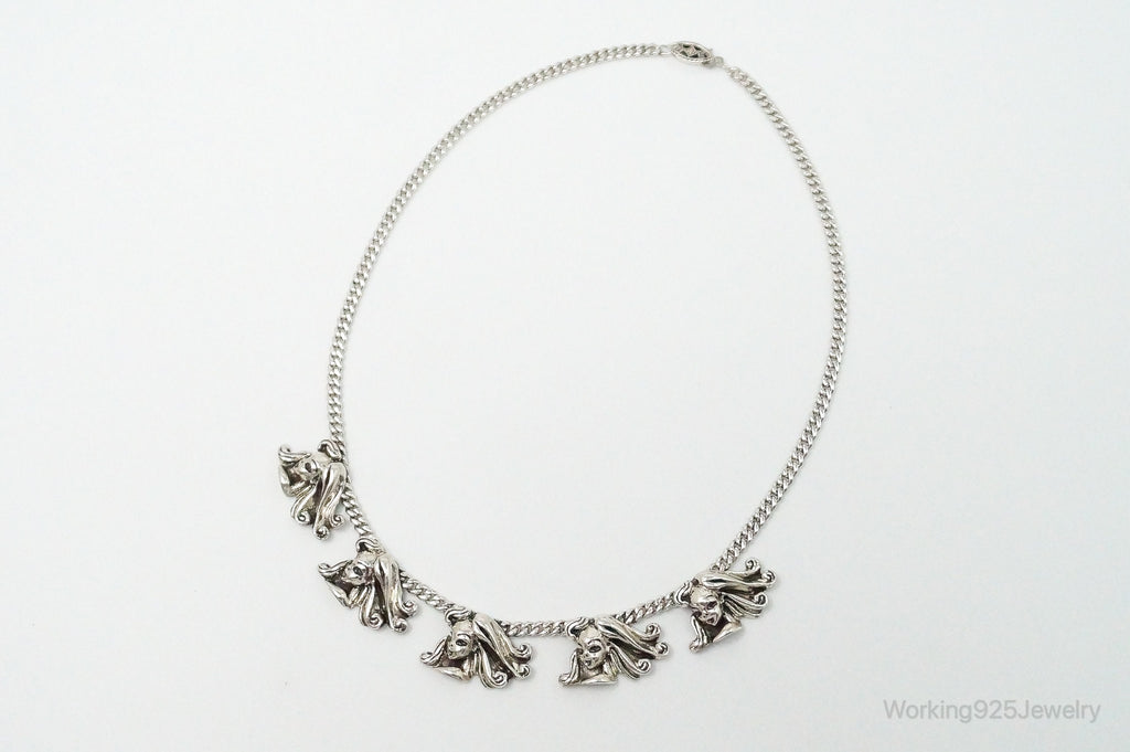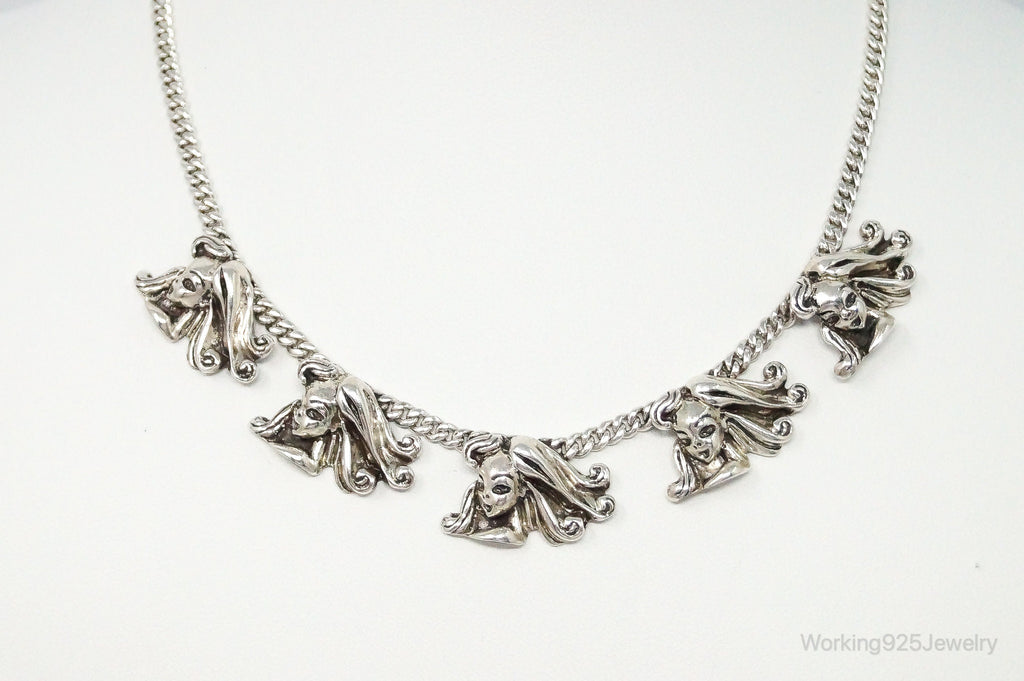 Vintage Ladies Flowing Hair Modernist Sterling Silver Chain Necklace