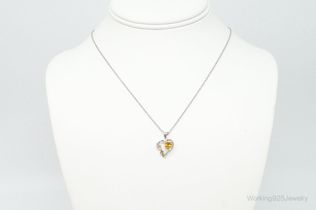 Vintage Landstrom 12K Black Hills Gold Citrine Sterling Silver Necklace