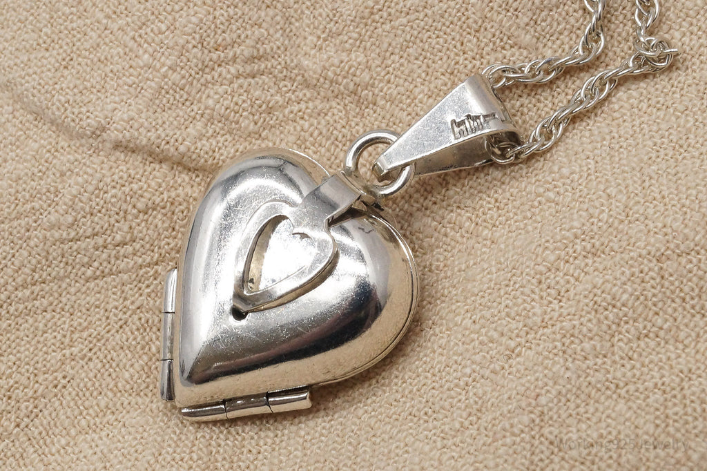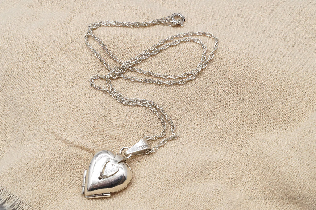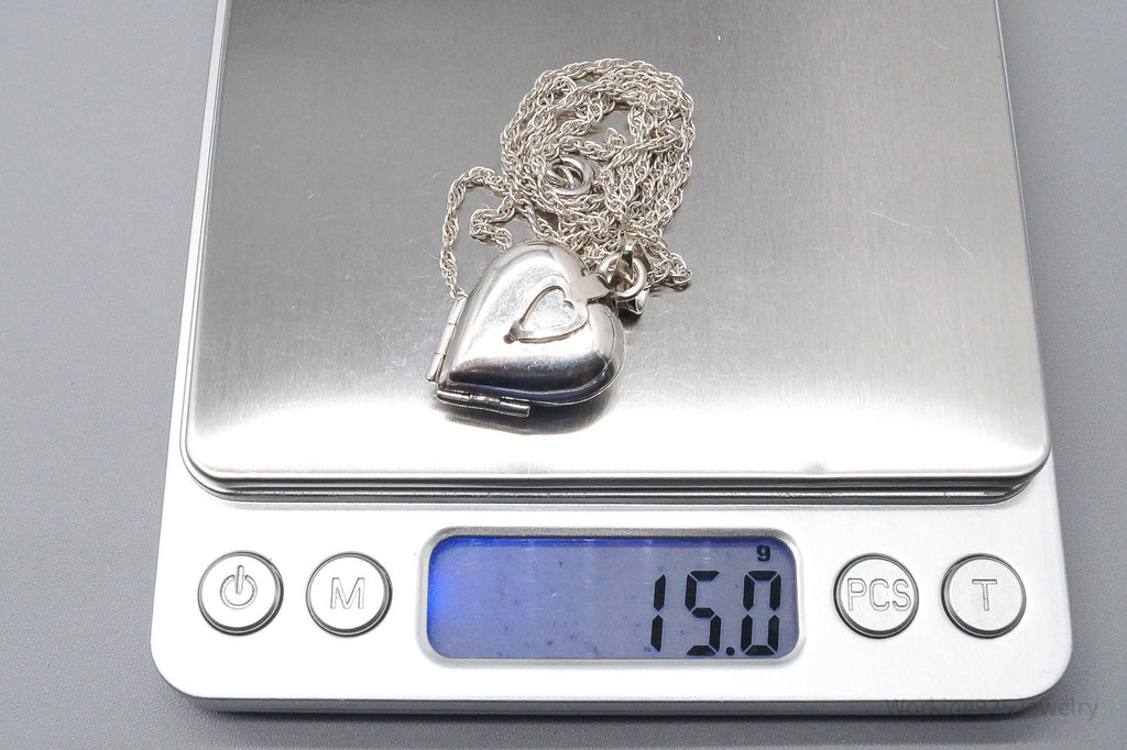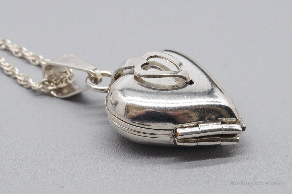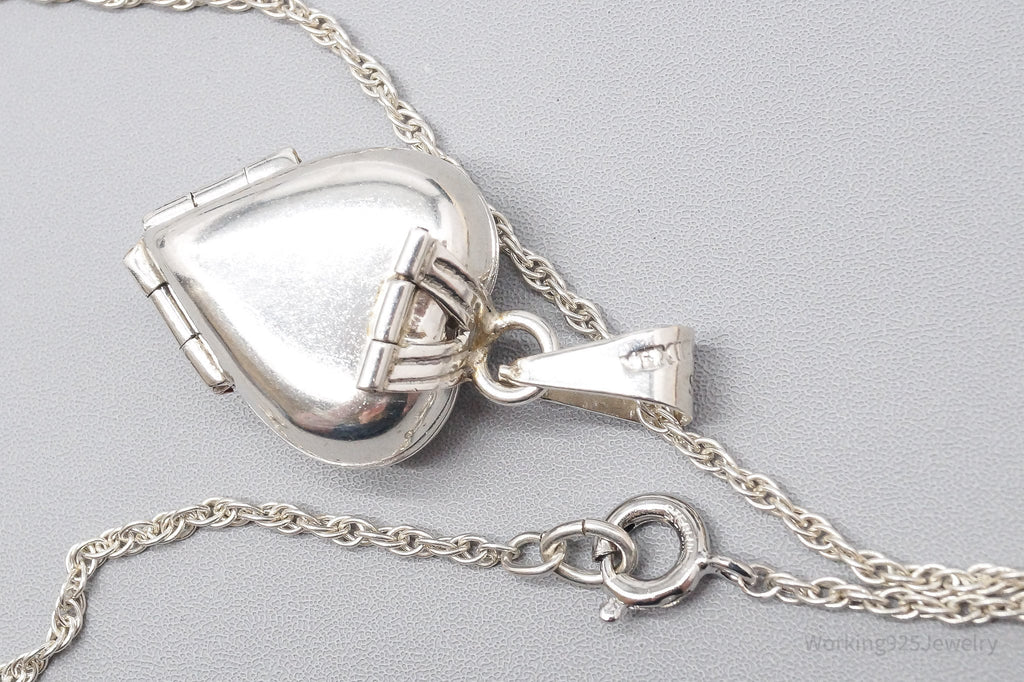 Vintage Large 4 Picture Heart Locket Sterling Silver Necklace 20"