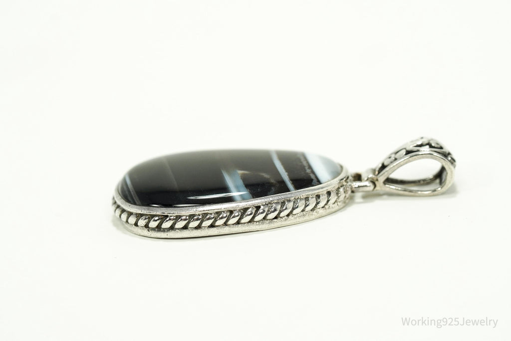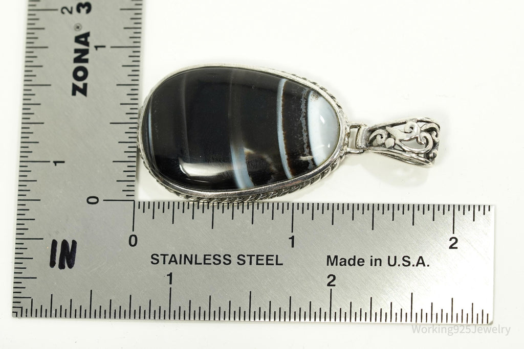 Vintage Large Black Lace Agate Sterling Silver Pendant