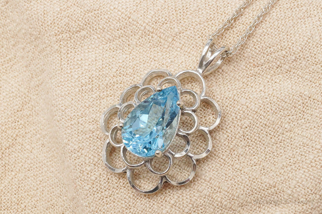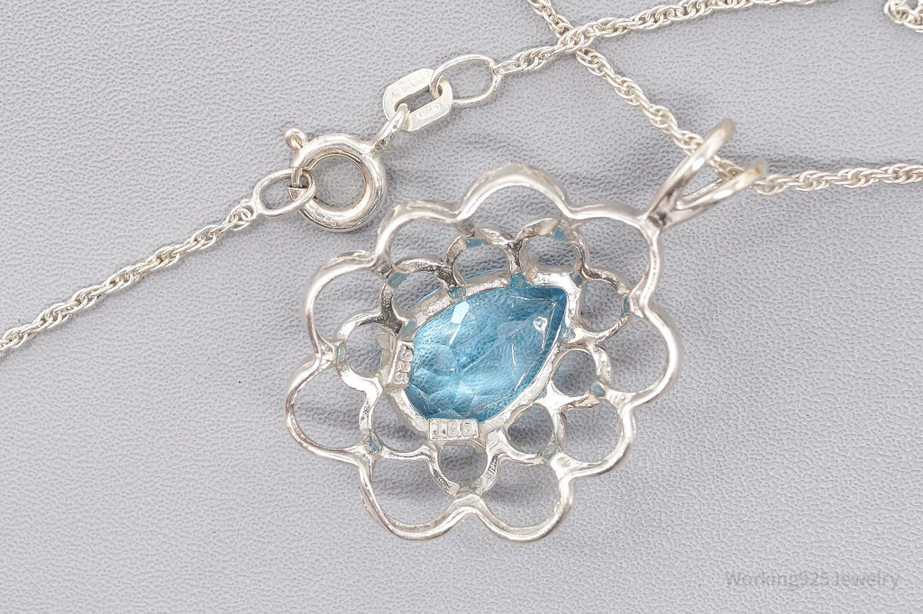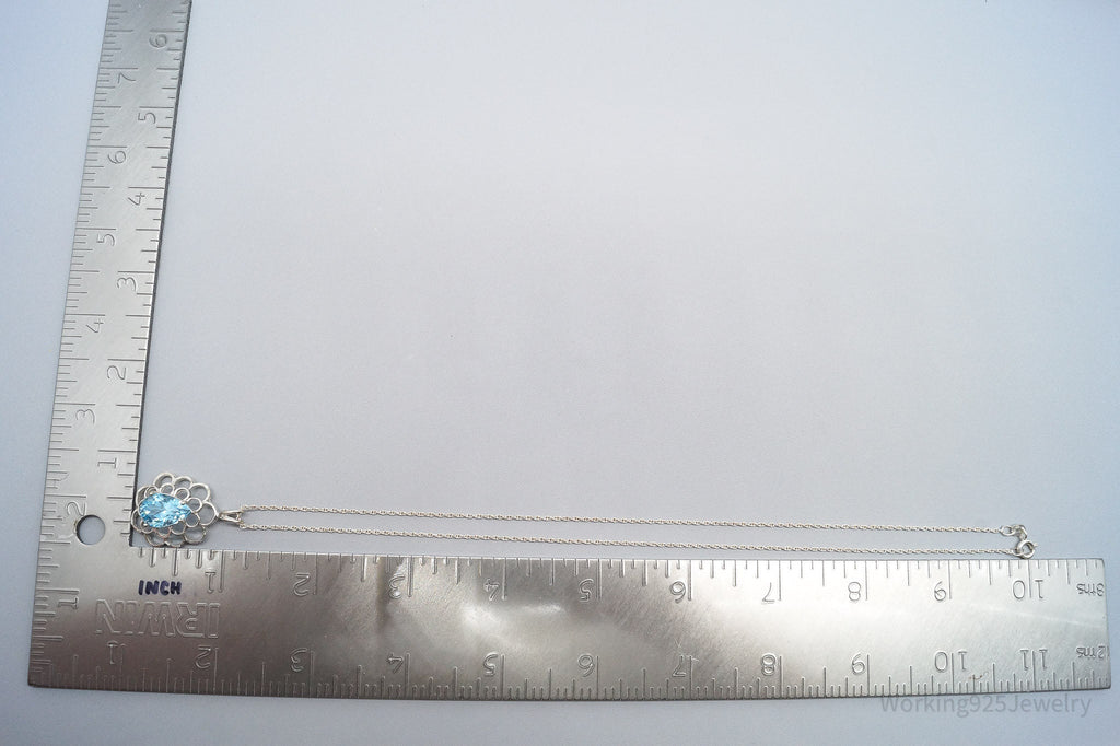 Vintage Large Blue Topaz Sterling Silver Necklace 18"