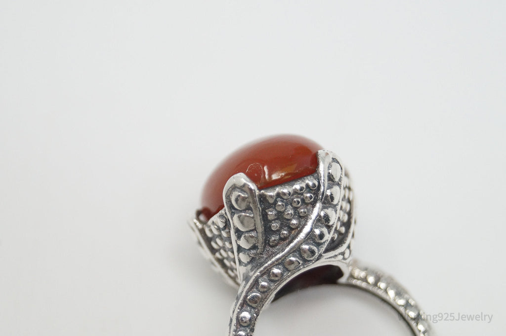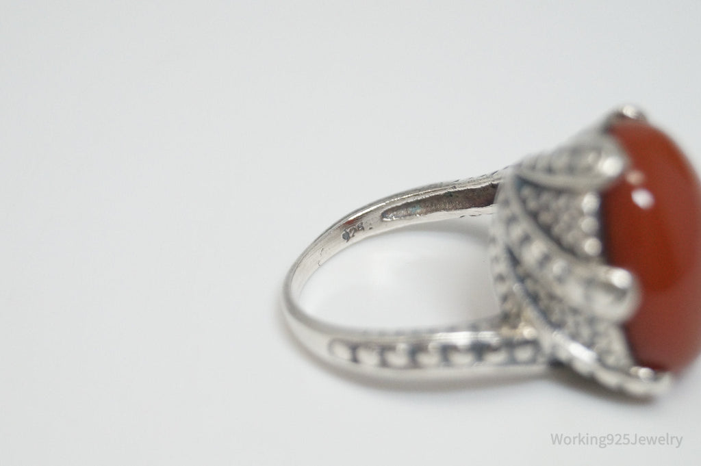 Vintage Large Carnelian Viking Style Sterling Silver Ring - Sz 6.75