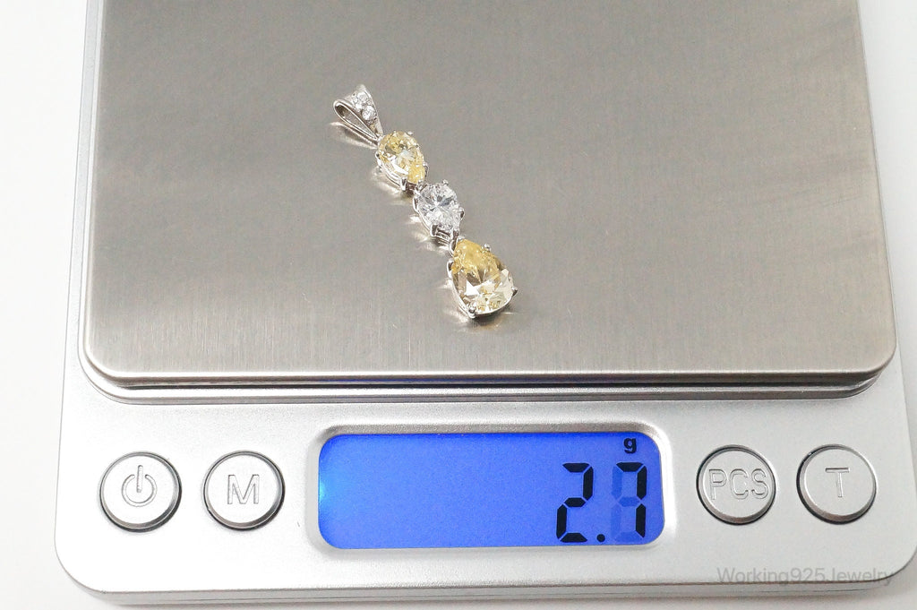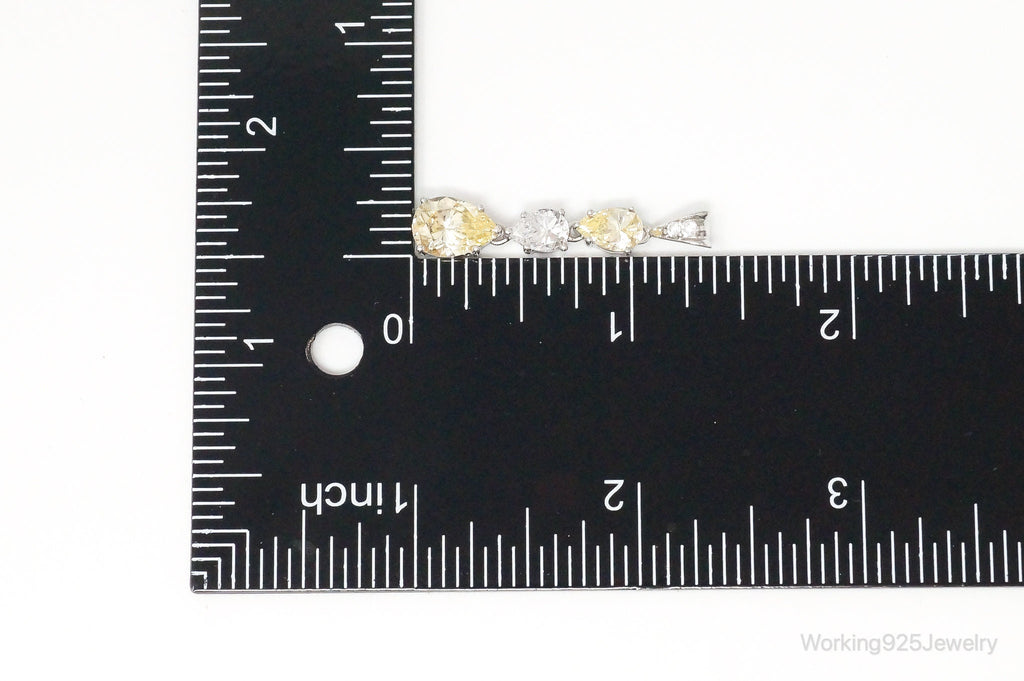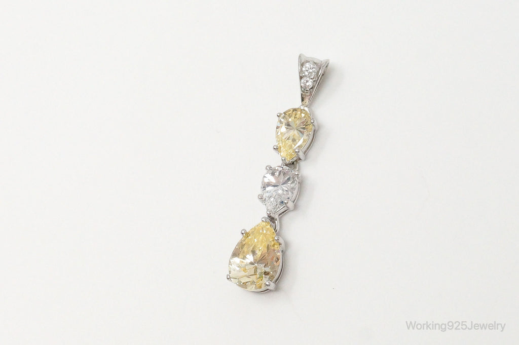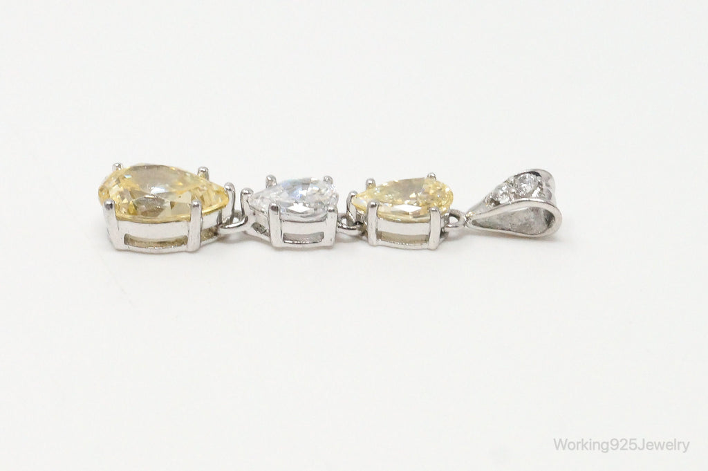 Vintage Large Citrine Cubic Zirconia Sterling Silver Pendant