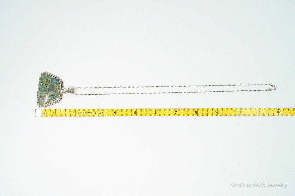 Vintage Large Crazy Lace Agate Sterling Silver Necklace