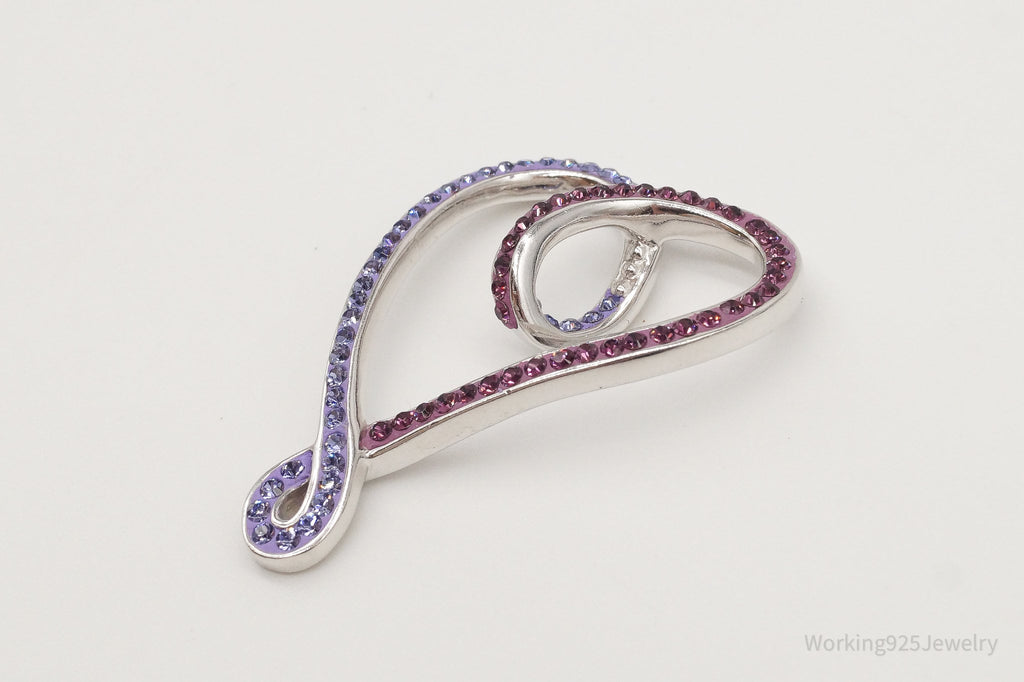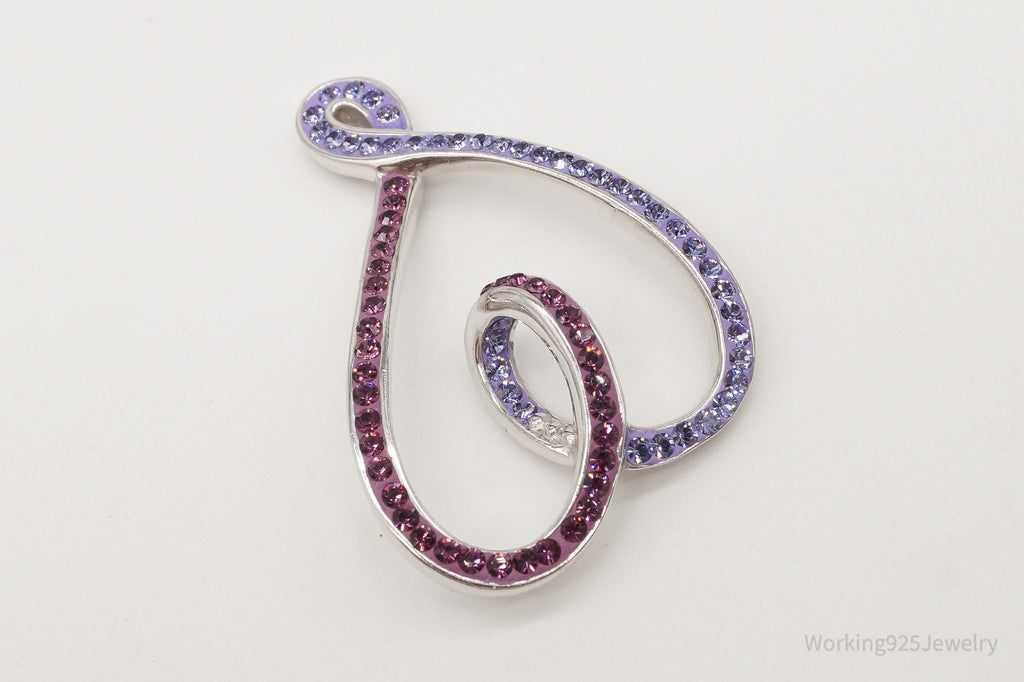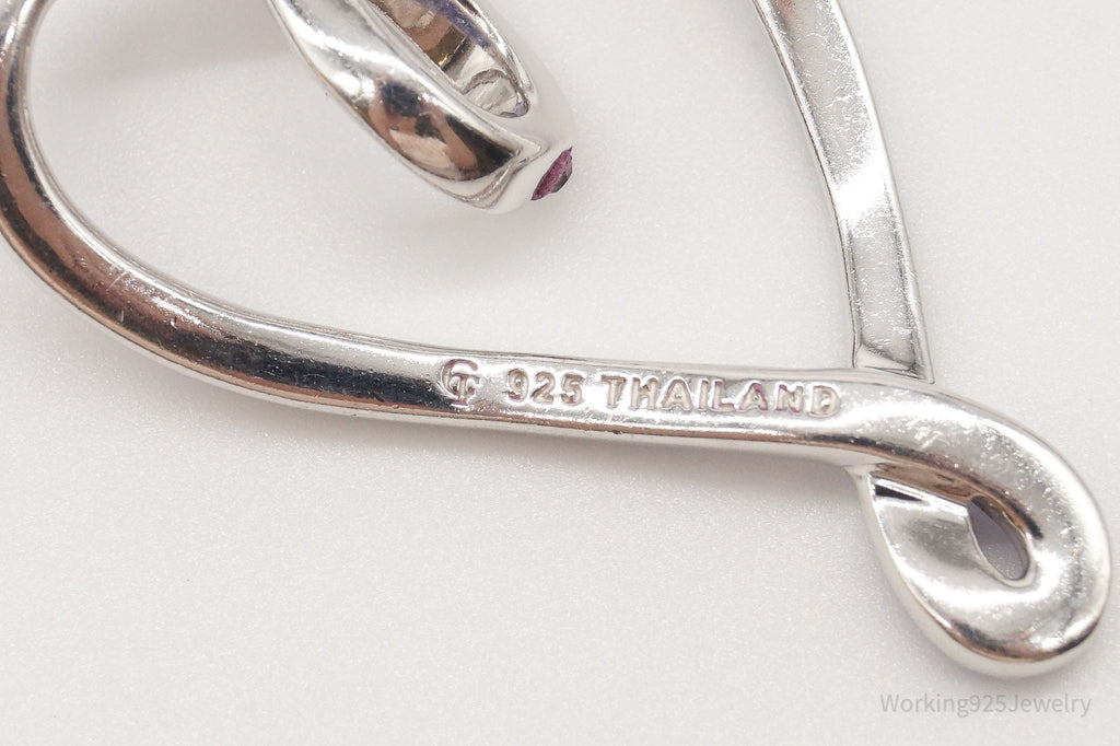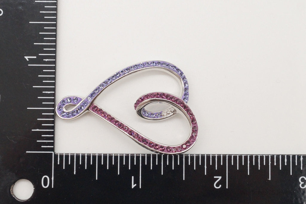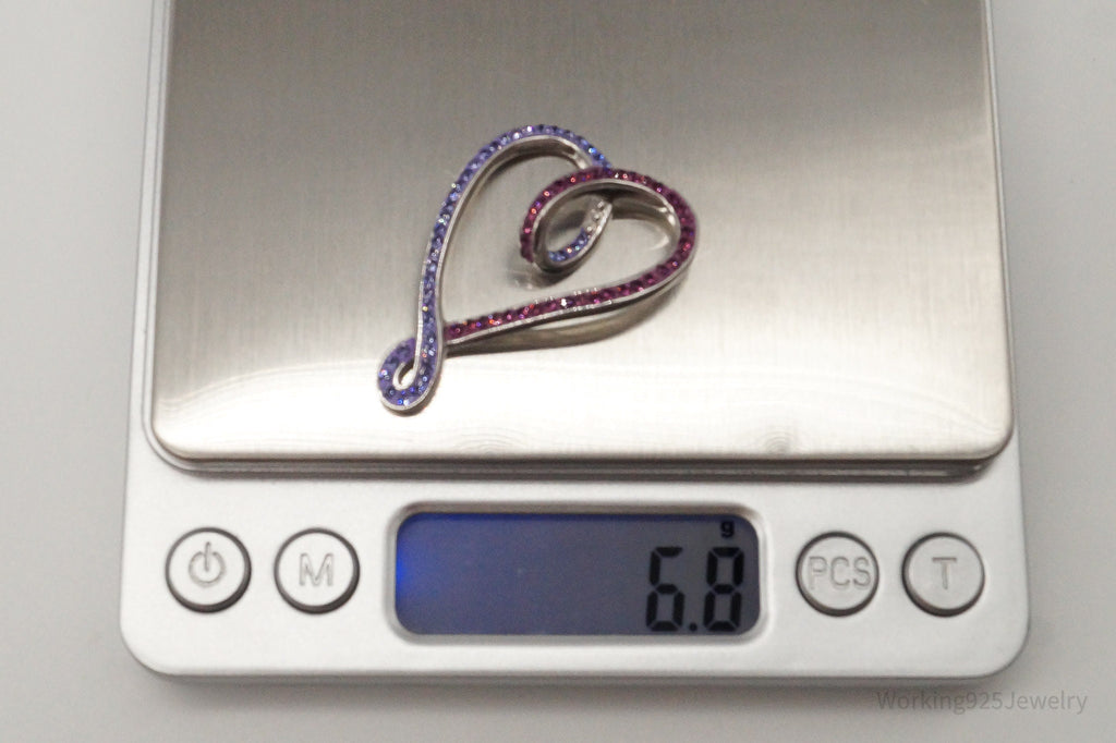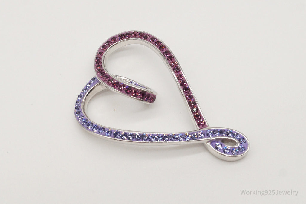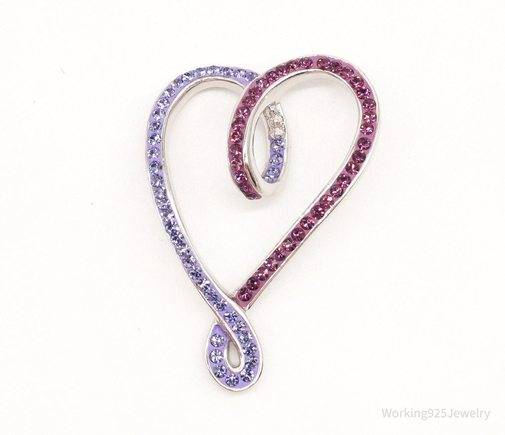 Vintage Large Crystals Heart Sterling Silver Pendant