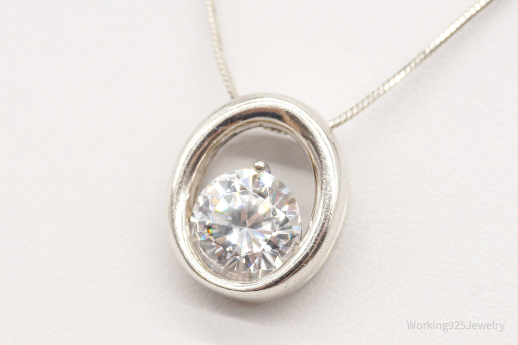 Vintage Large Cubic Zirconia DQCZ Sterling Silver Necklace