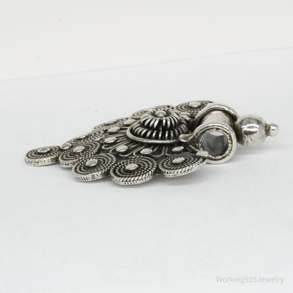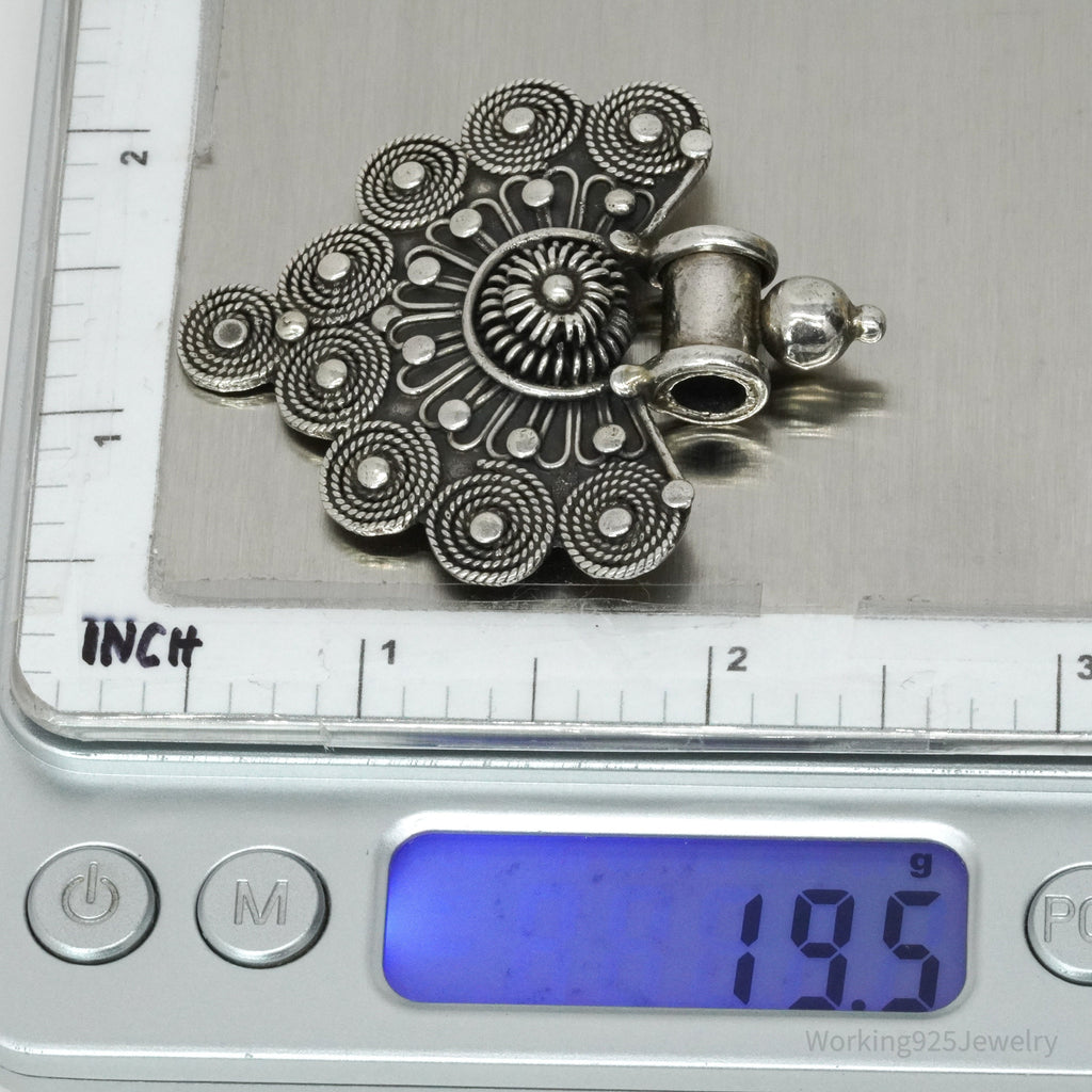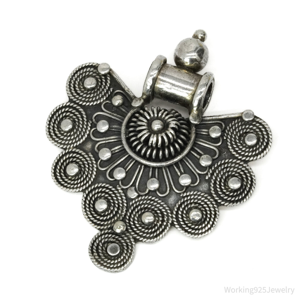 Vintage Large Filigree Ornate Sterling Silver Pendant