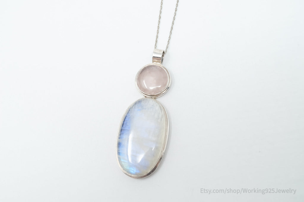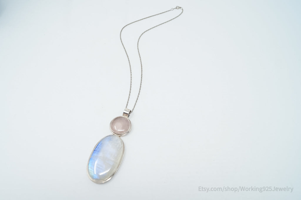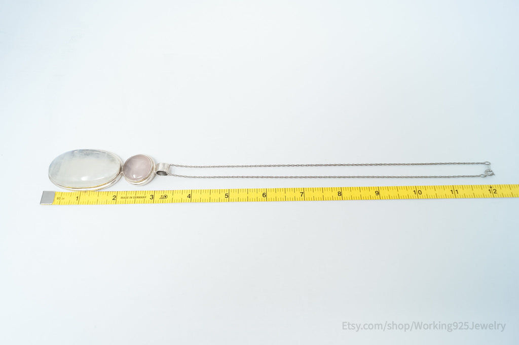 Vintage Large Moonstone Rose Quartz Sterling Silver Southwestern Necklace