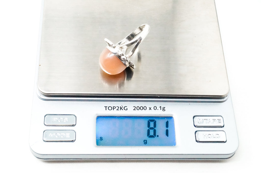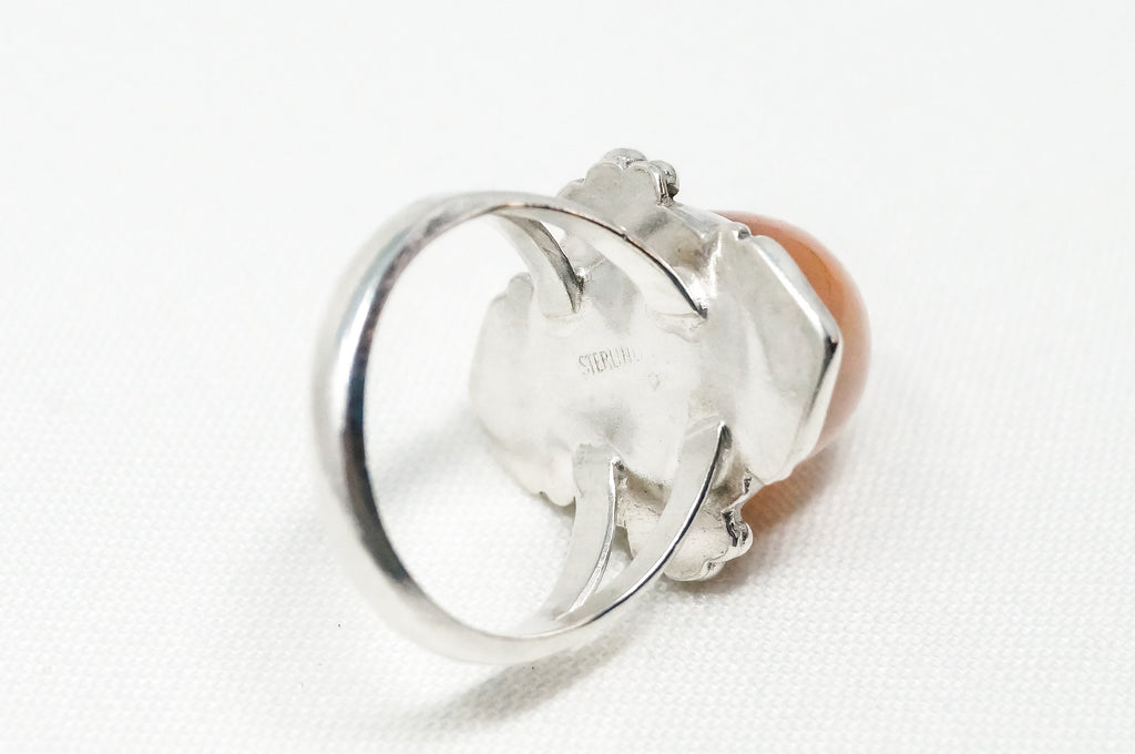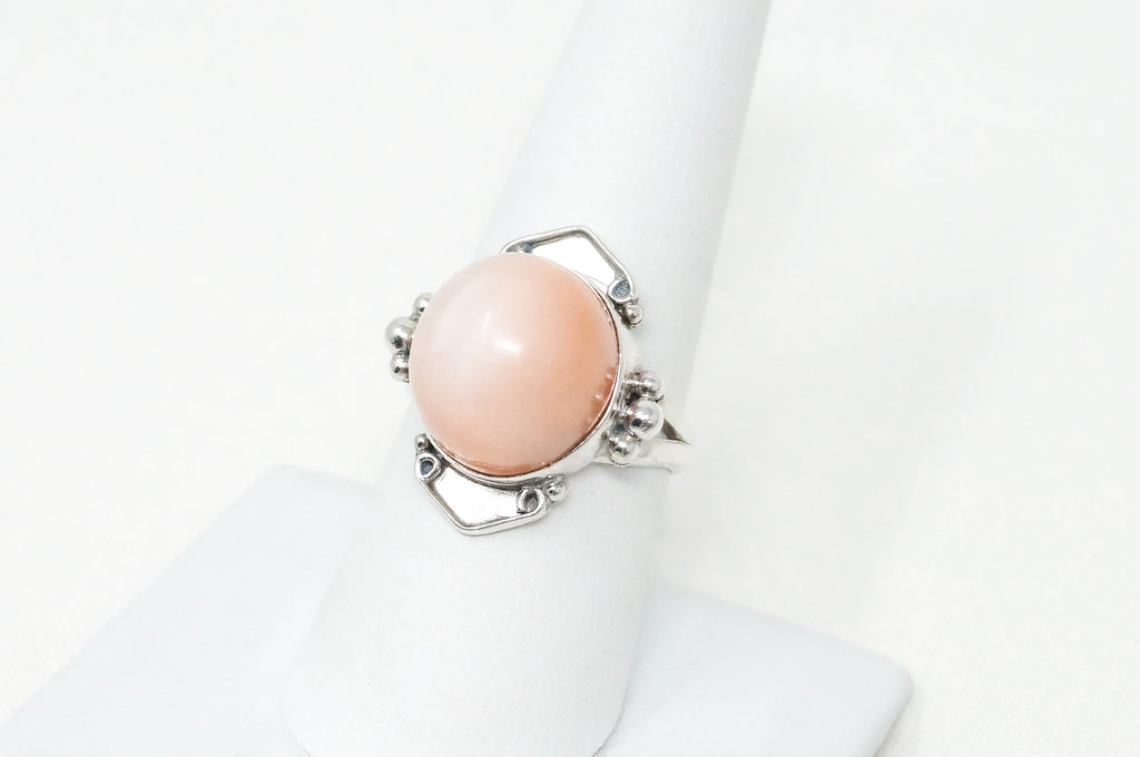 Vintage Large Peach Mother Of Pearl Sterling Silver Ring - Sz 8.25 -784542964