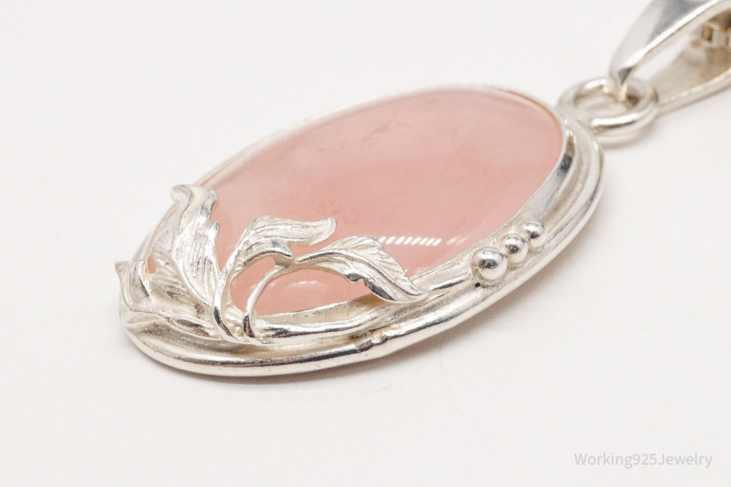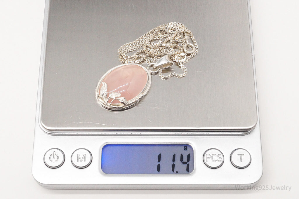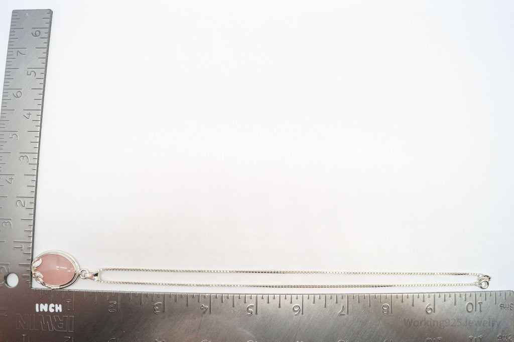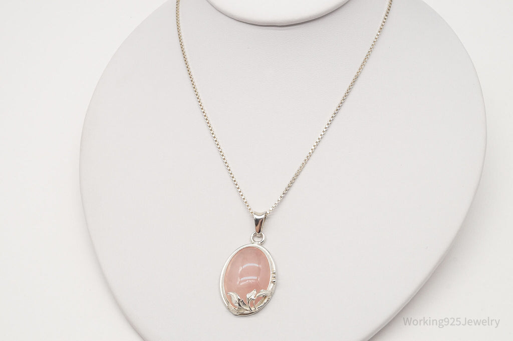 Vintage Large Rose Quartz Sterling Silver Necklace 18"