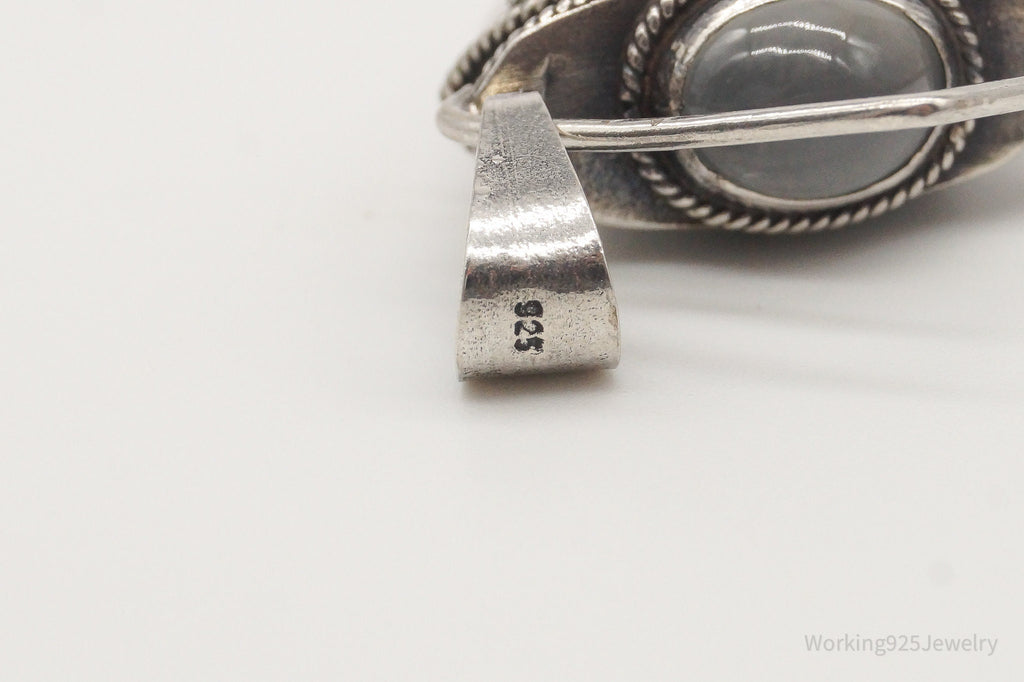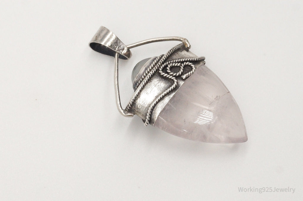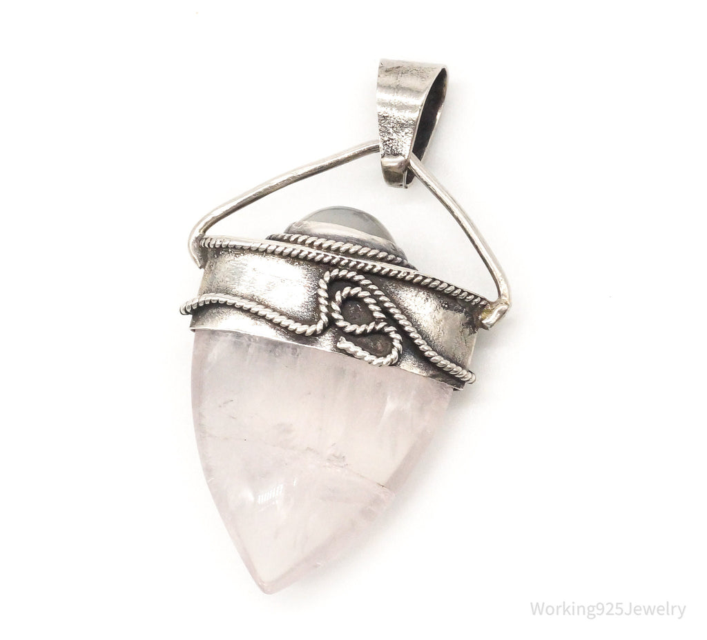 Vintage Large Rose Quartz White Moonstone Sterling Silver Pendant