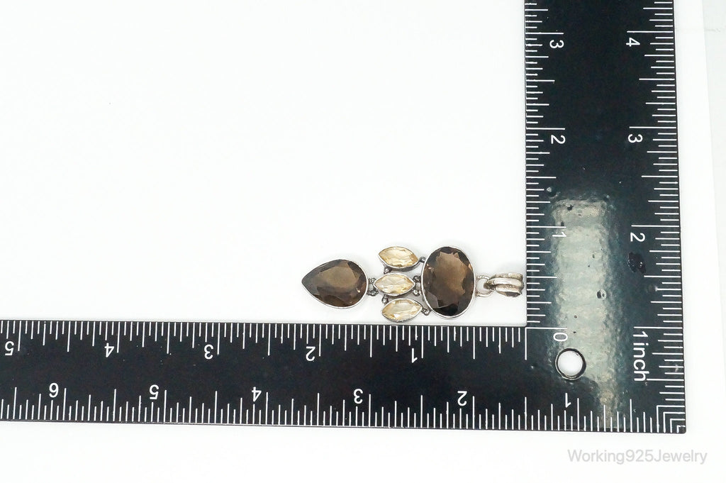Vintage Large Smoky Topaz Citrine Sterling Silver Pendant