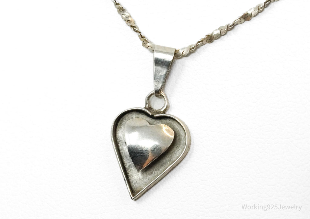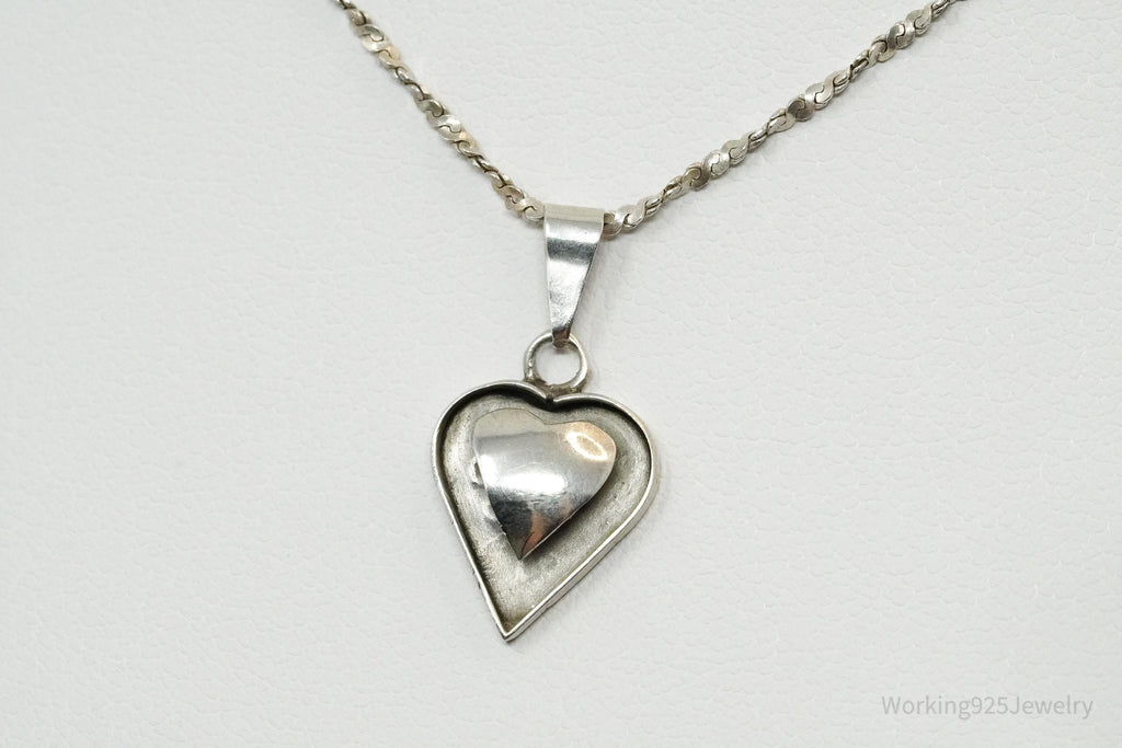 Vintage Mexico Modernist Heart Sterling Silver Necklace 20"