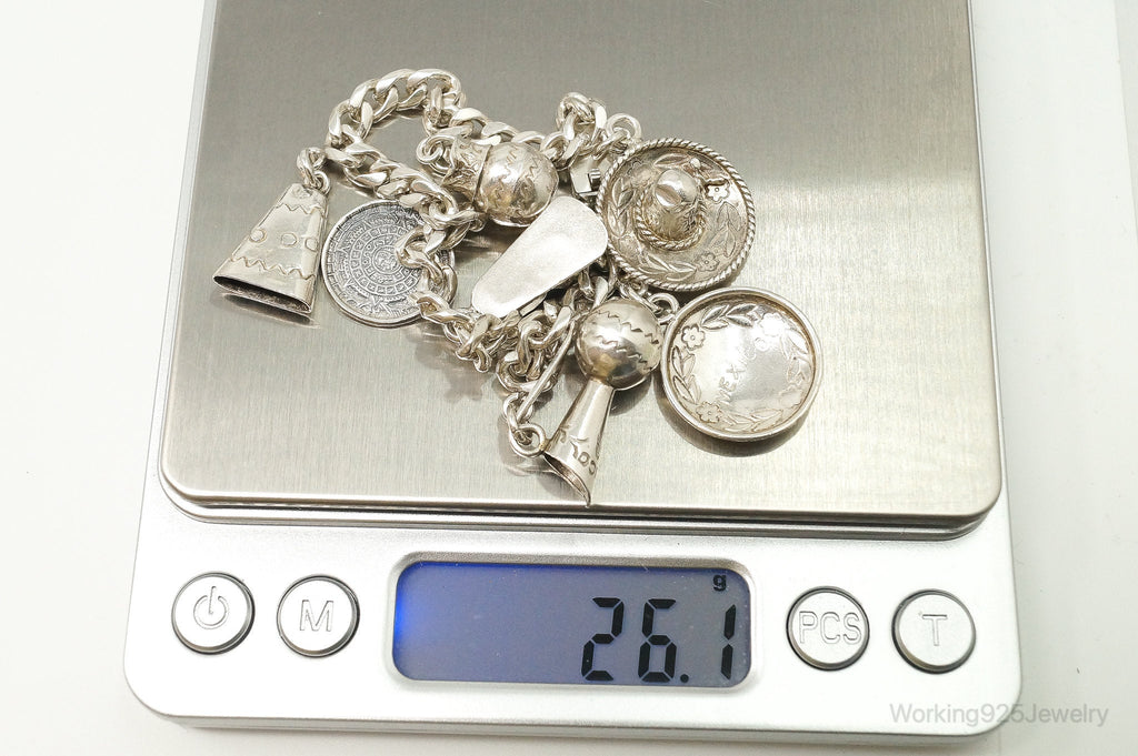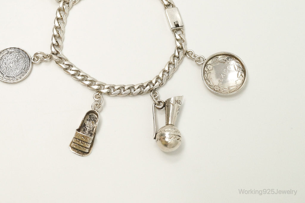 Vintage Mexico Tencha Southwestern Charms Sterling Silver Bracelet