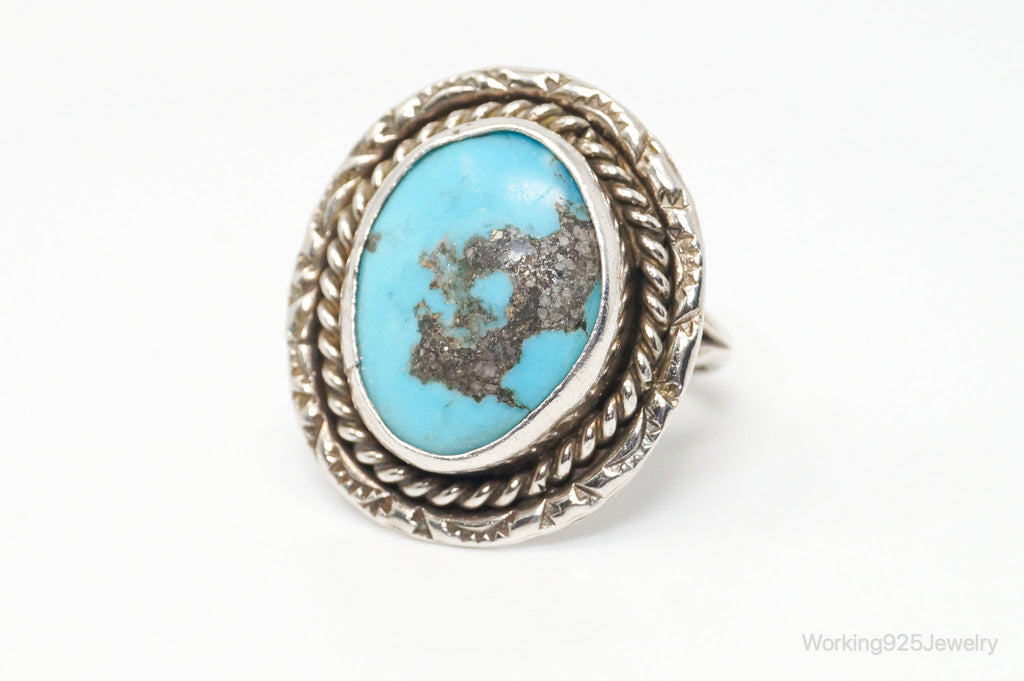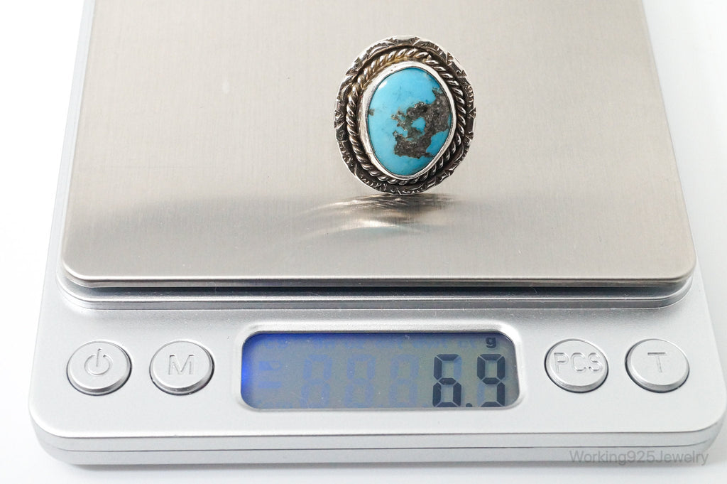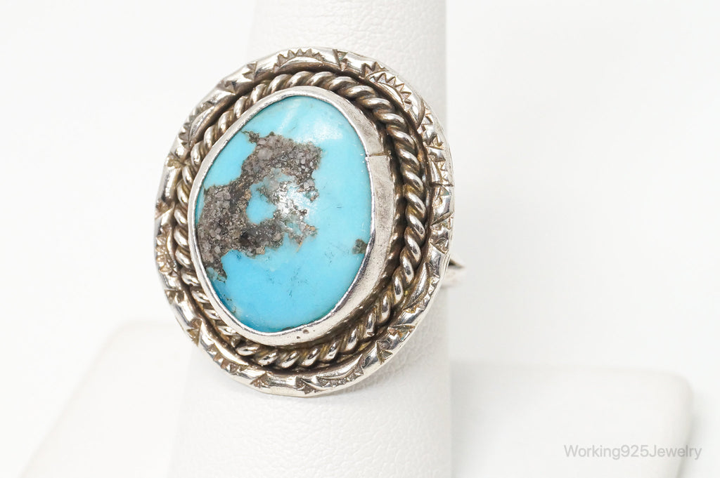 Vintage Native American Blue Turquoise Unsigned Sterling Silver Ring - Sz 8.25