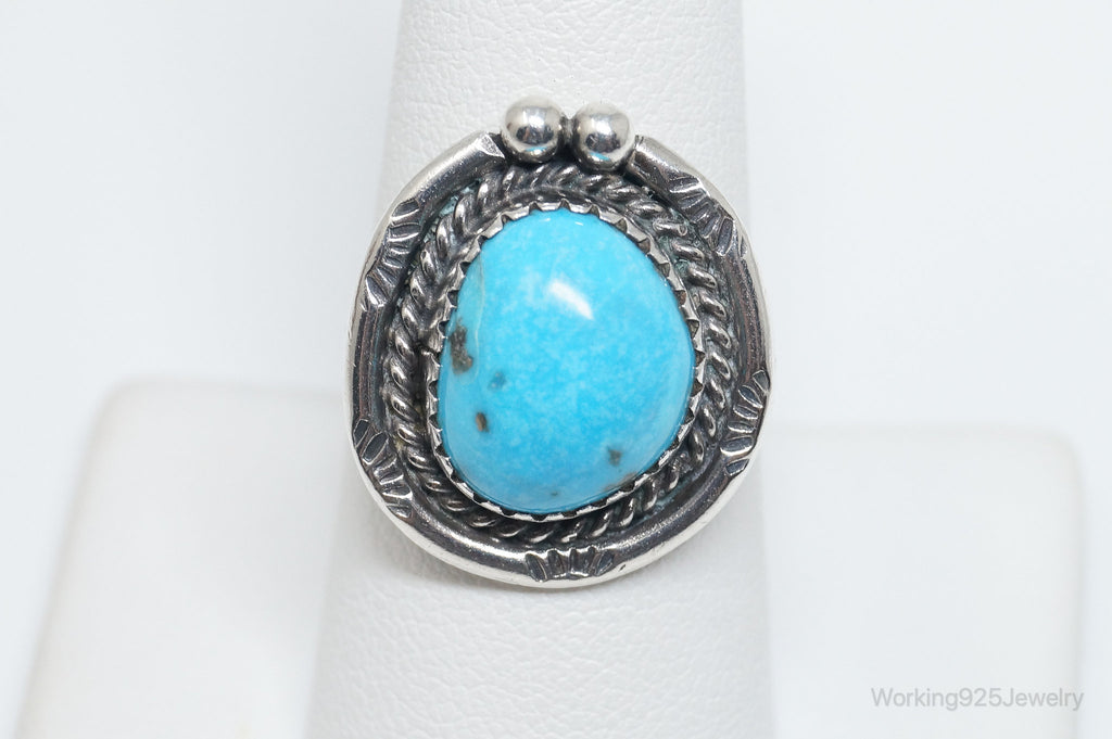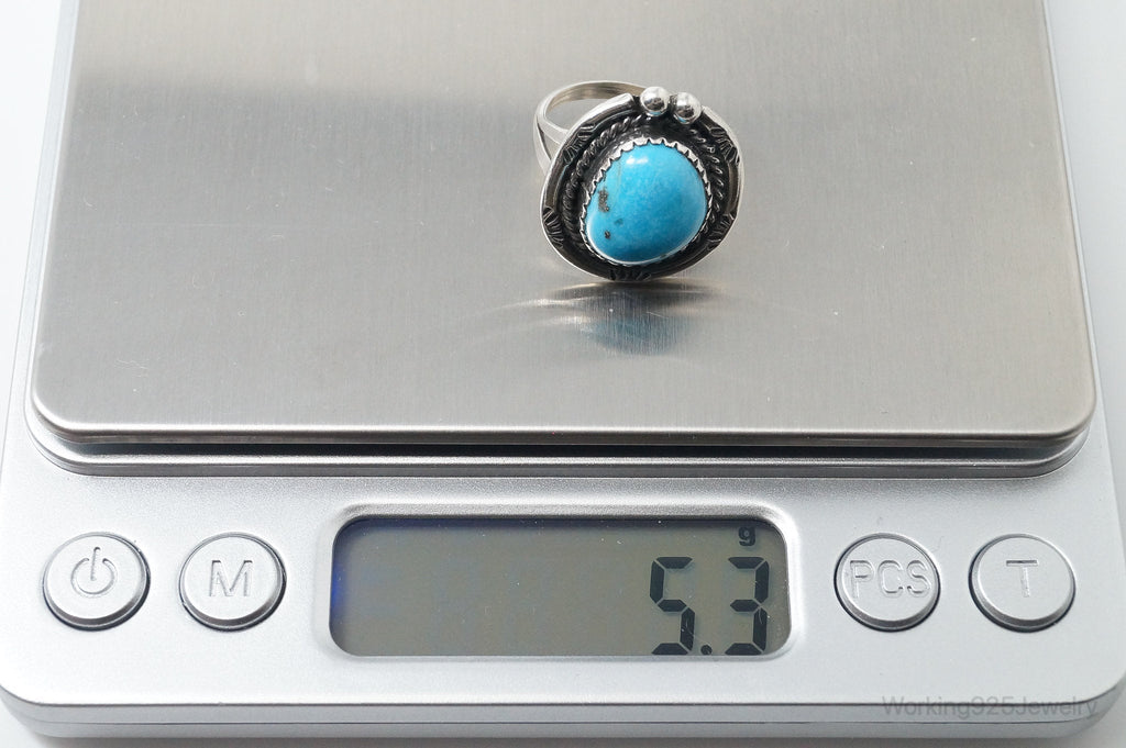 Vintage Native American Blue Turquoise Unsigned Sterling Silver Ring - SZ 8.25