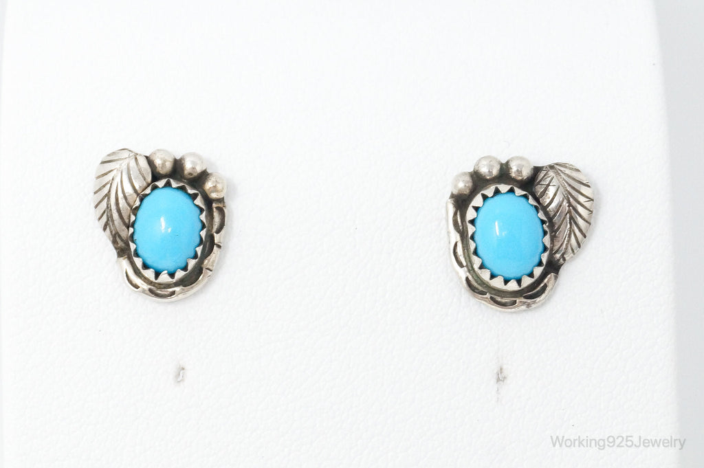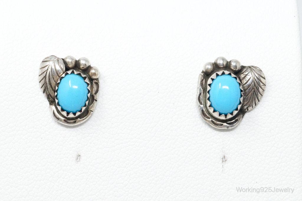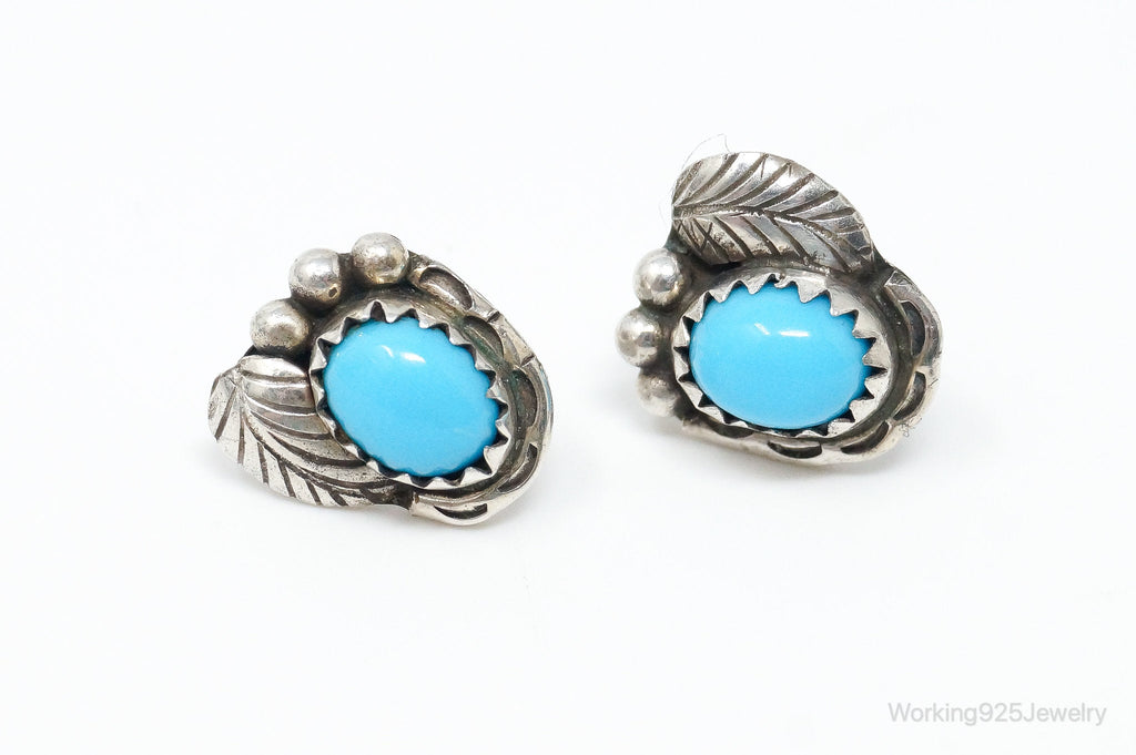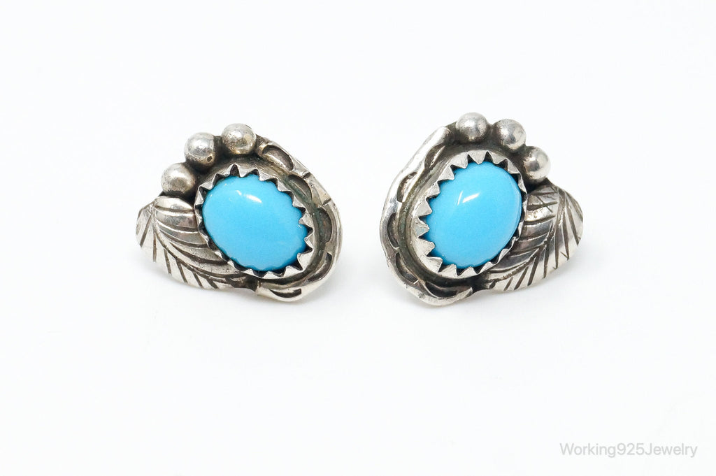 Vintage Native American CB Turquoise Sterling Silver Earrings