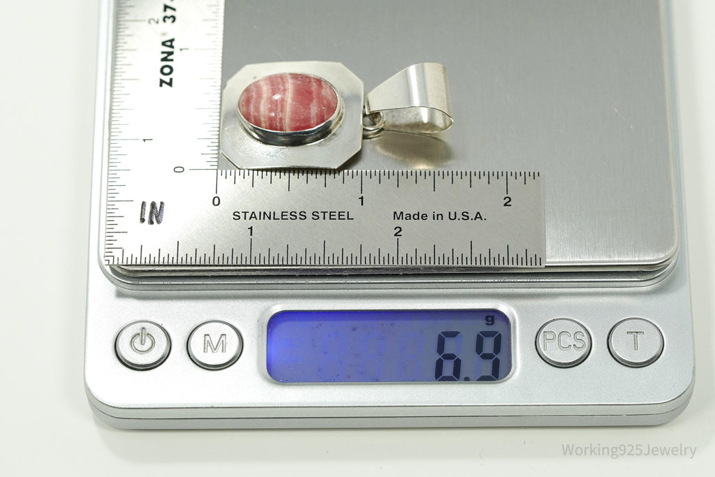 Vintage Native American Rhodochrosite Sterling Silver Pendant