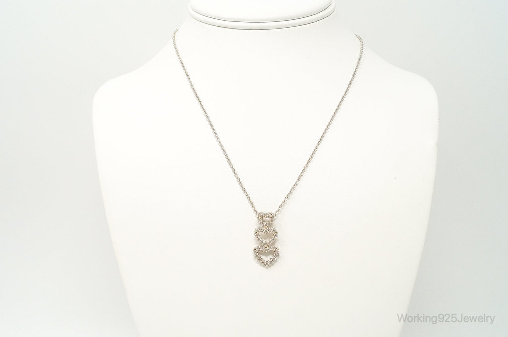 Vintage Open Hearts Cubic Zirconia Sterling Silver Necklace