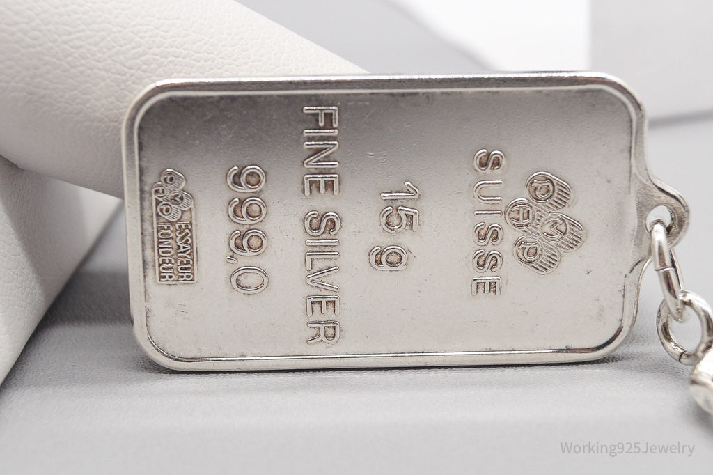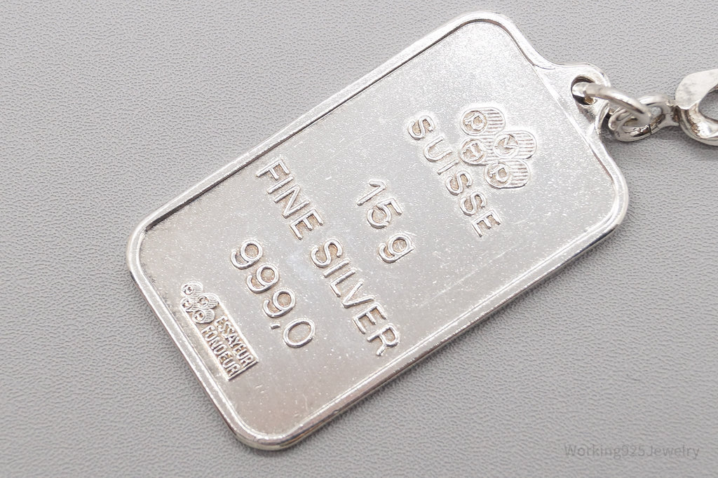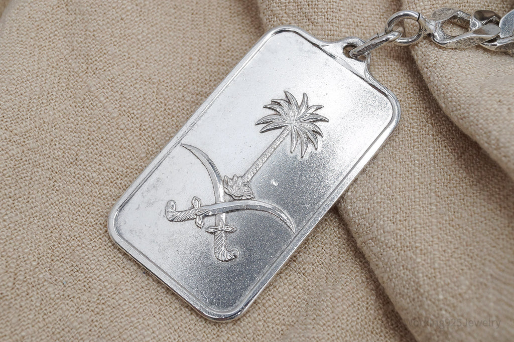 Vintage PAMP Suisse 15 Gram Fine Silver 999.0 Palm Tree & Arabian Swords Keychain