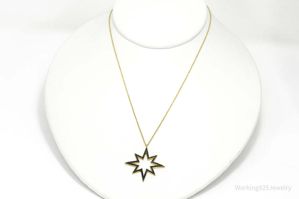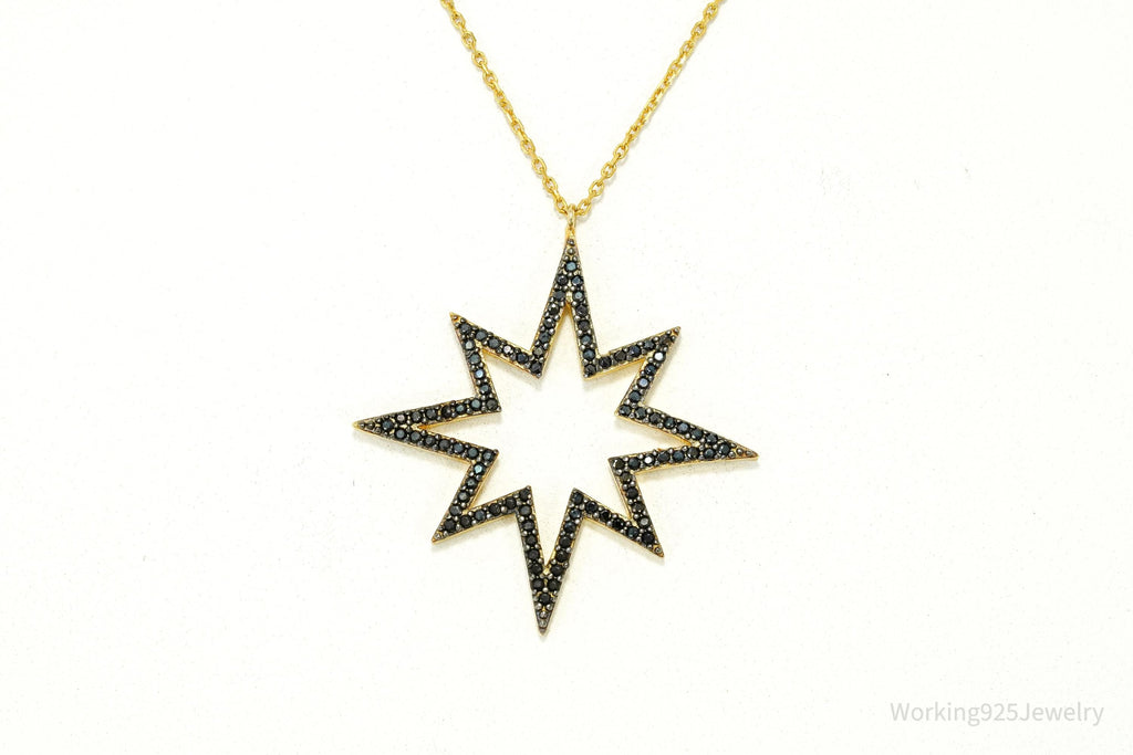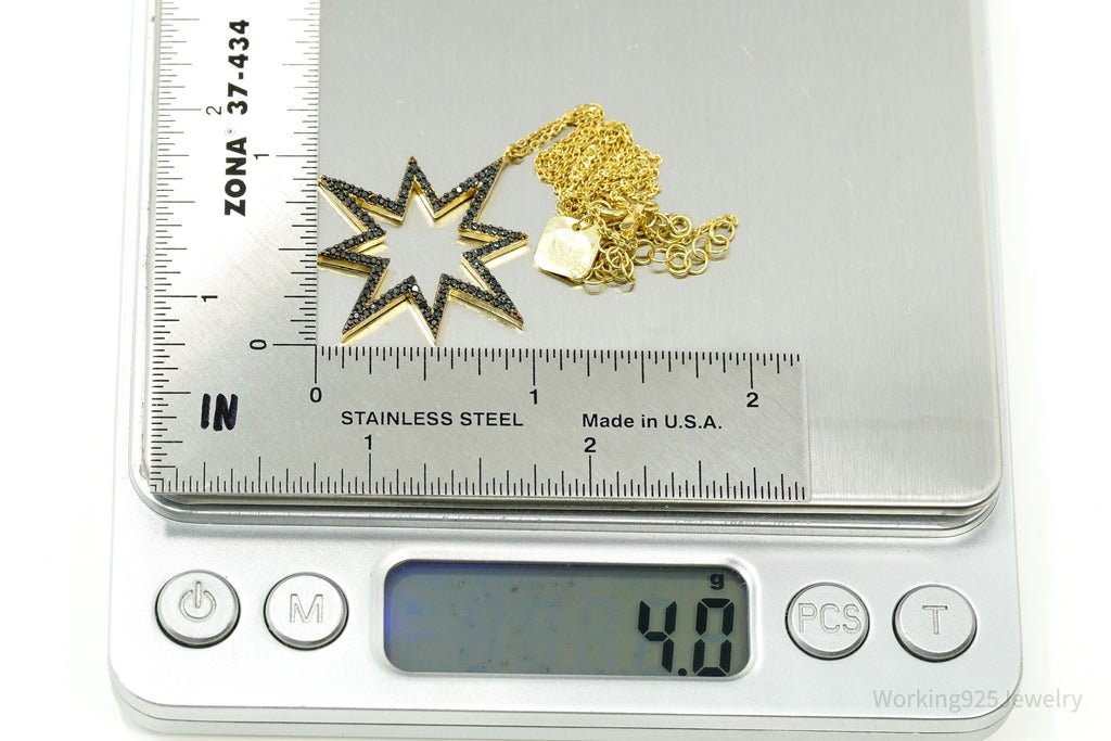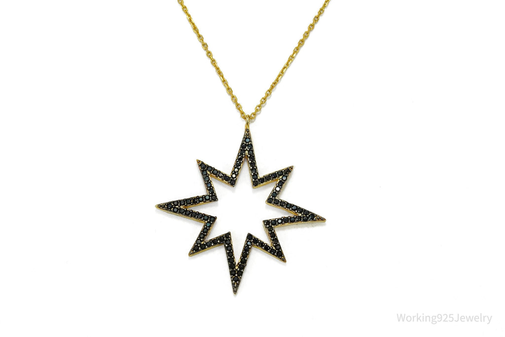 Vintage Pave Black Spinel Star Gold Vermeil Sterling Silver Necklace 17"