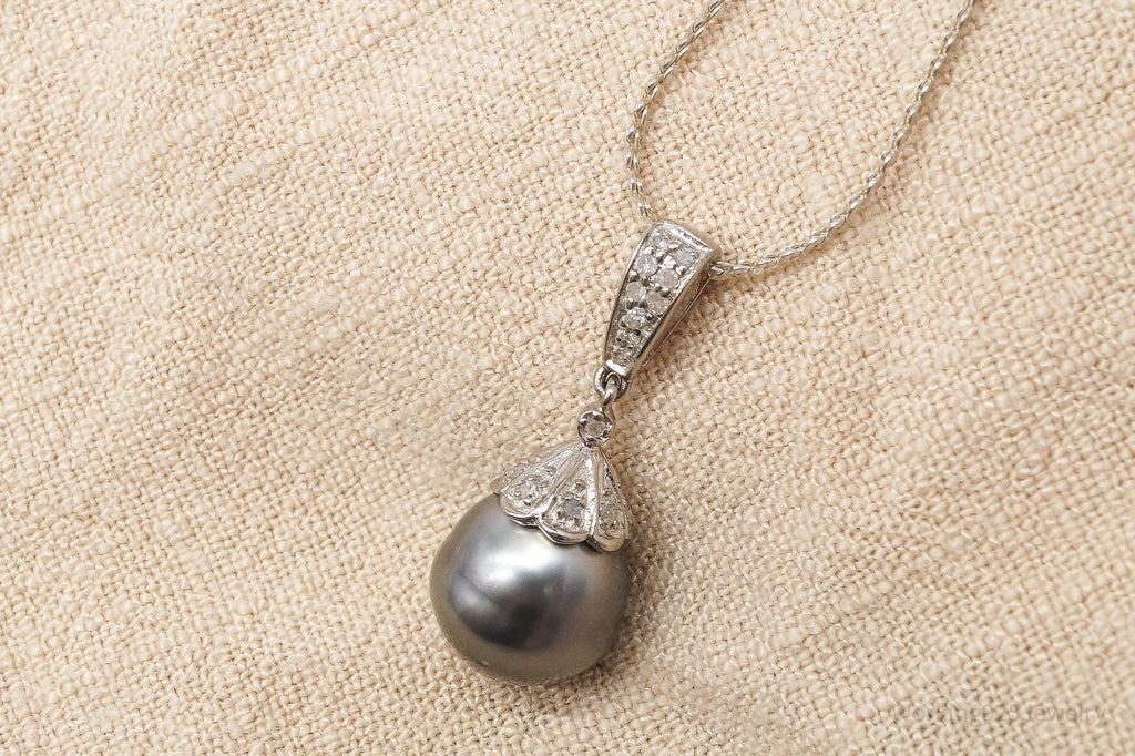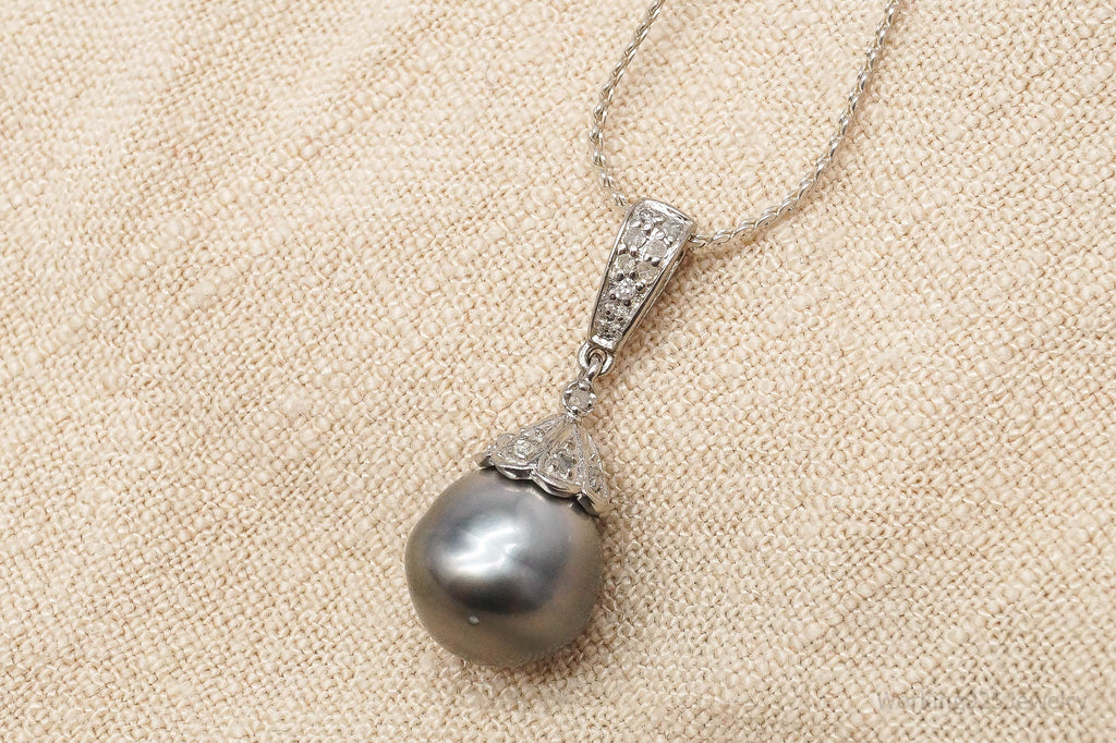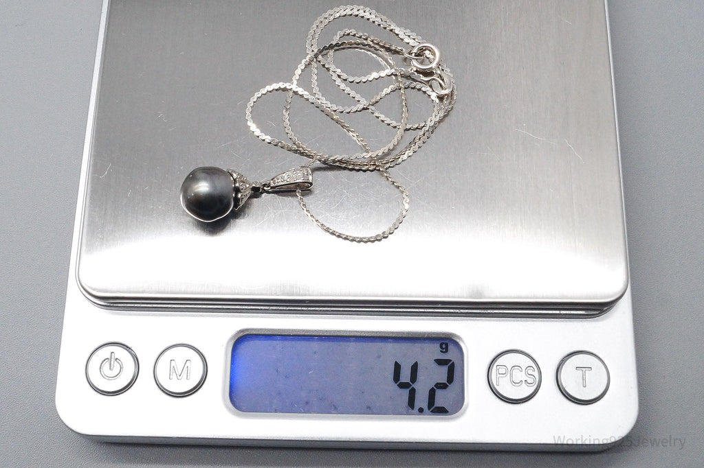 Vintage Pearl & Diamond Sterling Silver Necklace 18"
