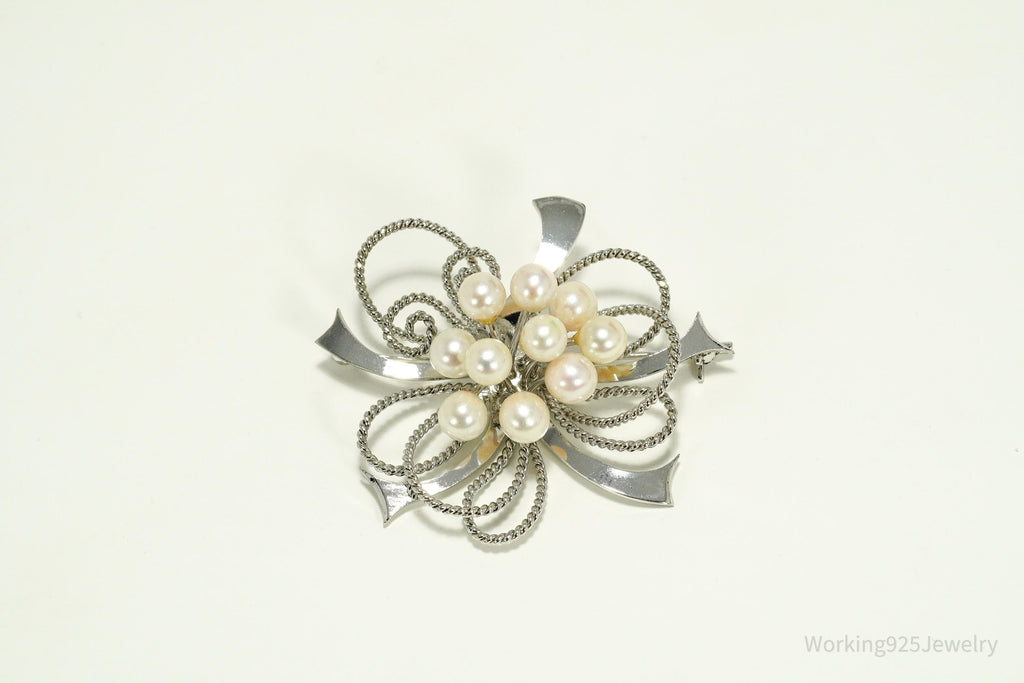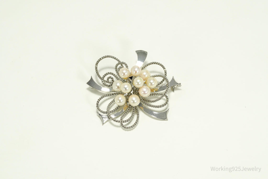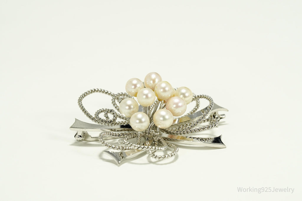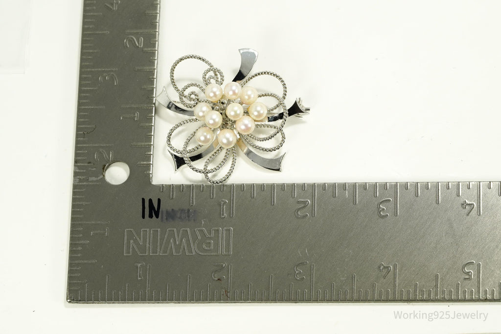 Vintage Pearl Sterling Silver Brooch Pin 1.75"