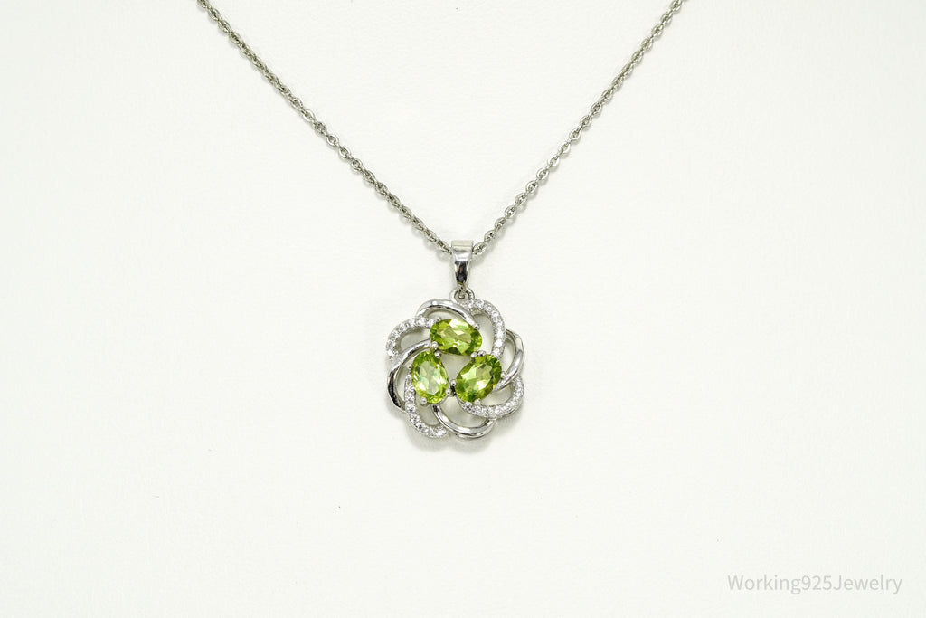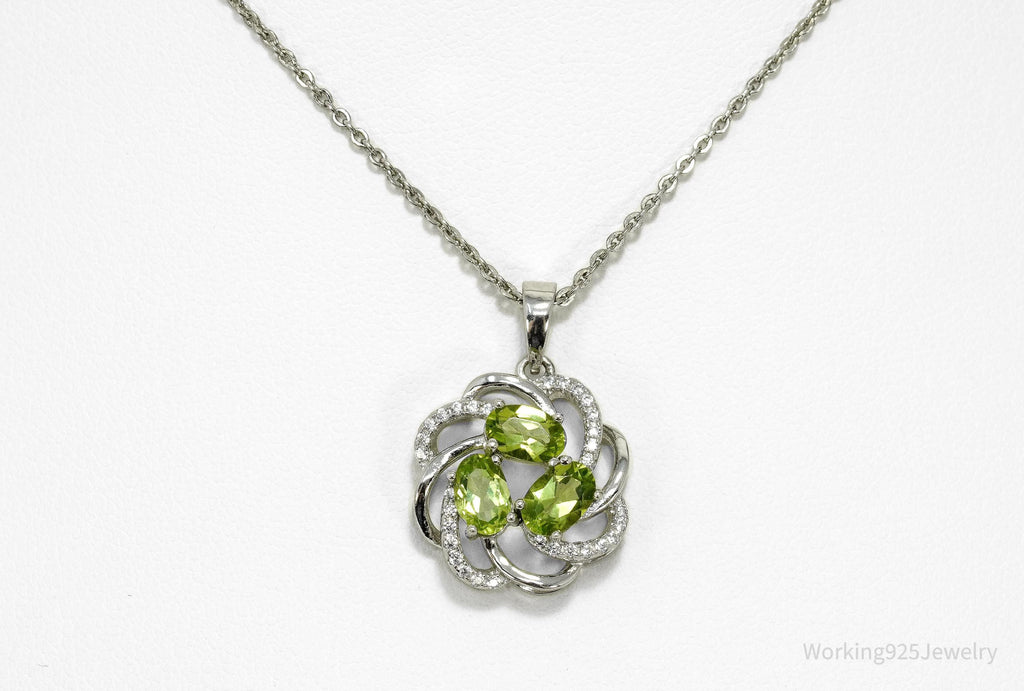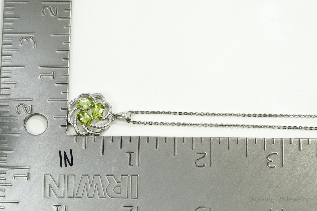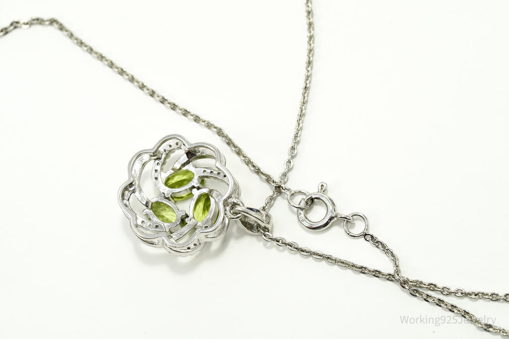 Vintage Peridot & Cubic Zirconia Sterling Silver Necklace 18"