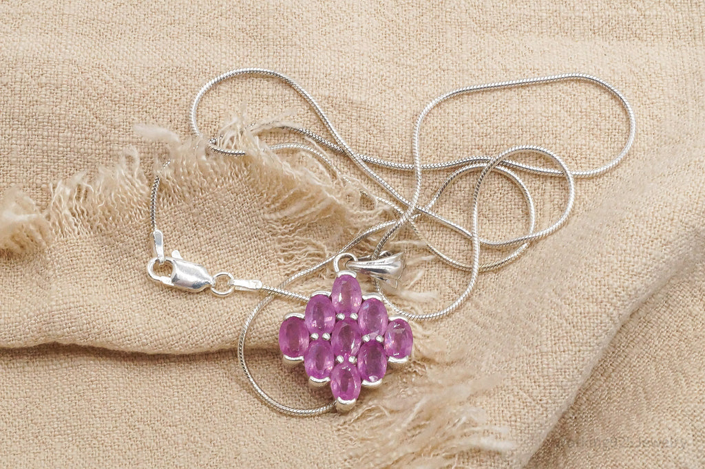 Vintage Pink Sapphire Sterling Silver Chain Necklace 18"