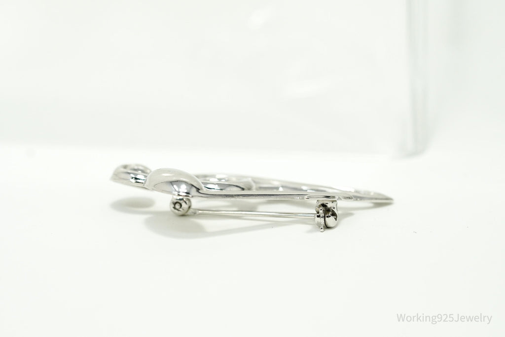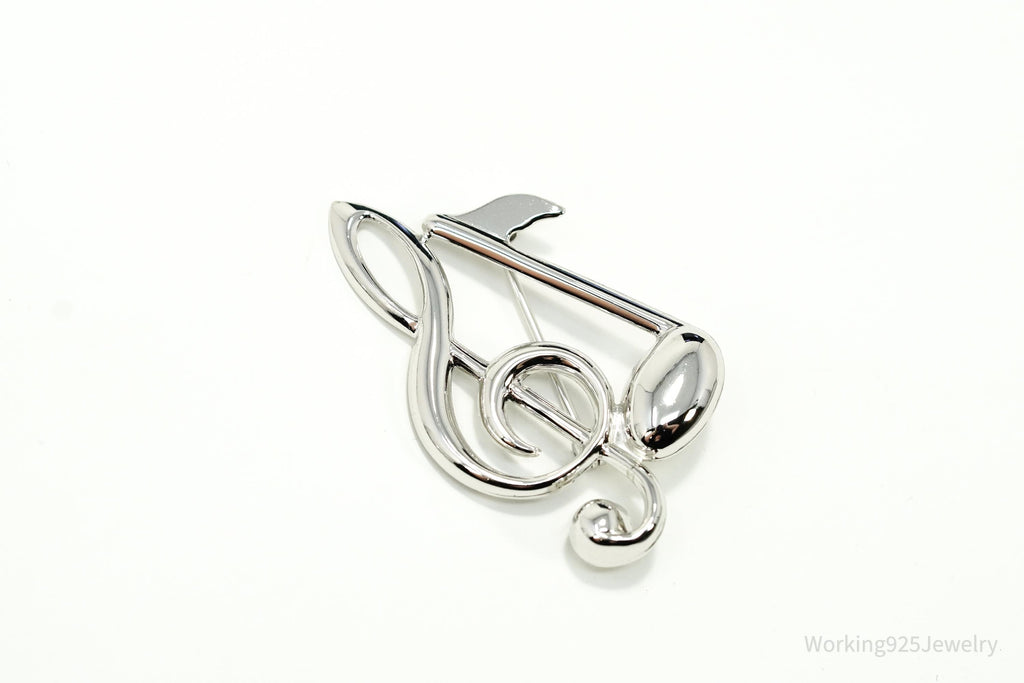 Vintage Puffy Music Notes Sterling Silver Brooch Pin