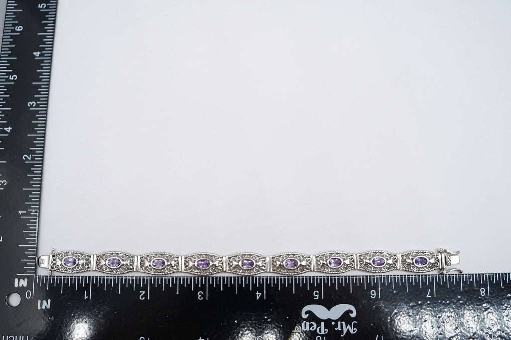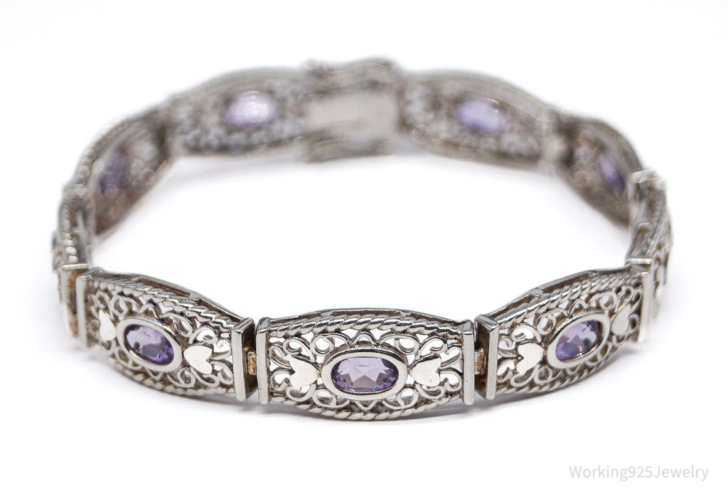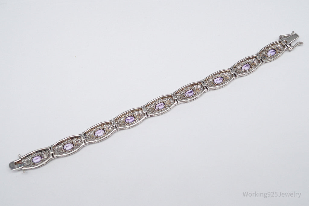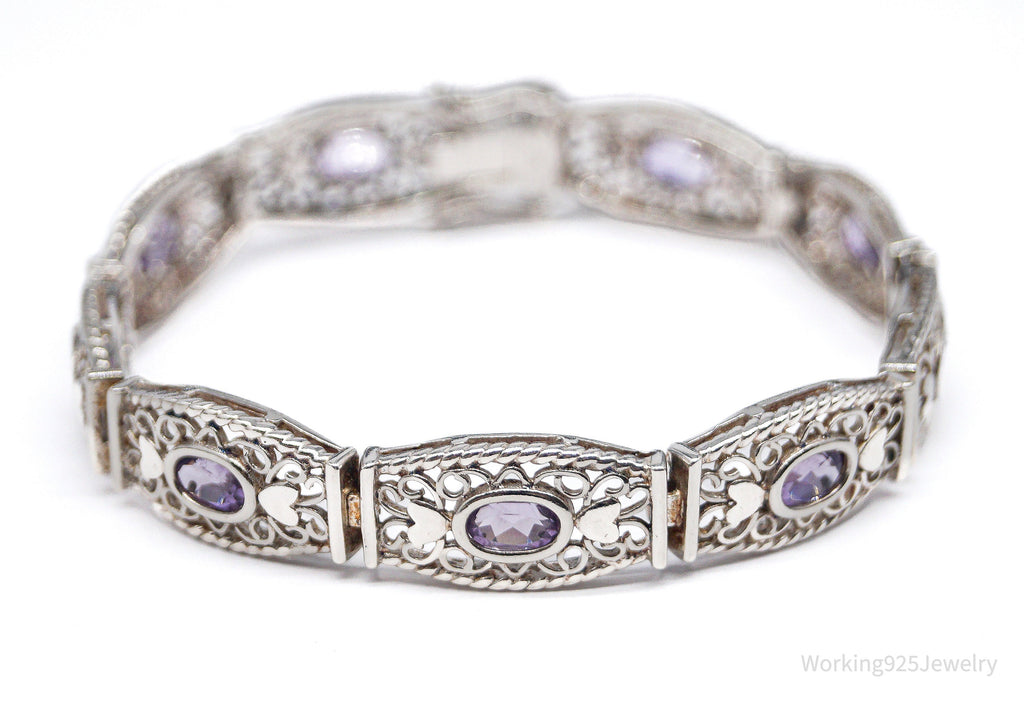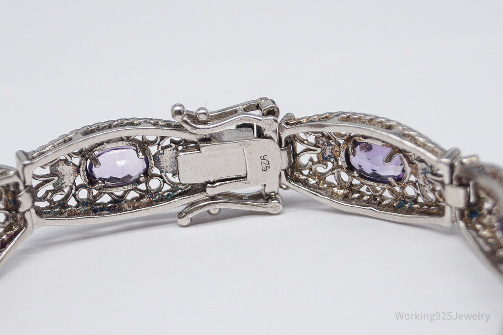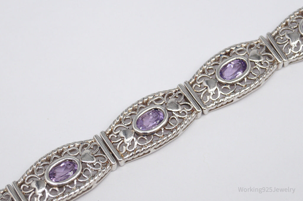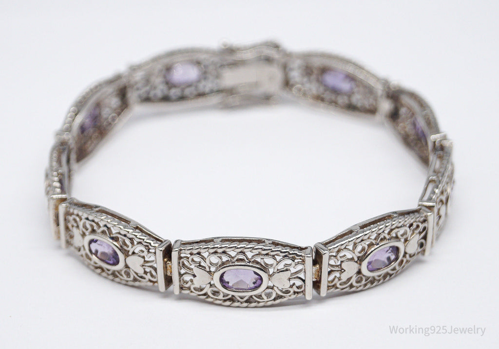 Vintage Purple Amethyst Sterling Silver Bracelet - 7.5"