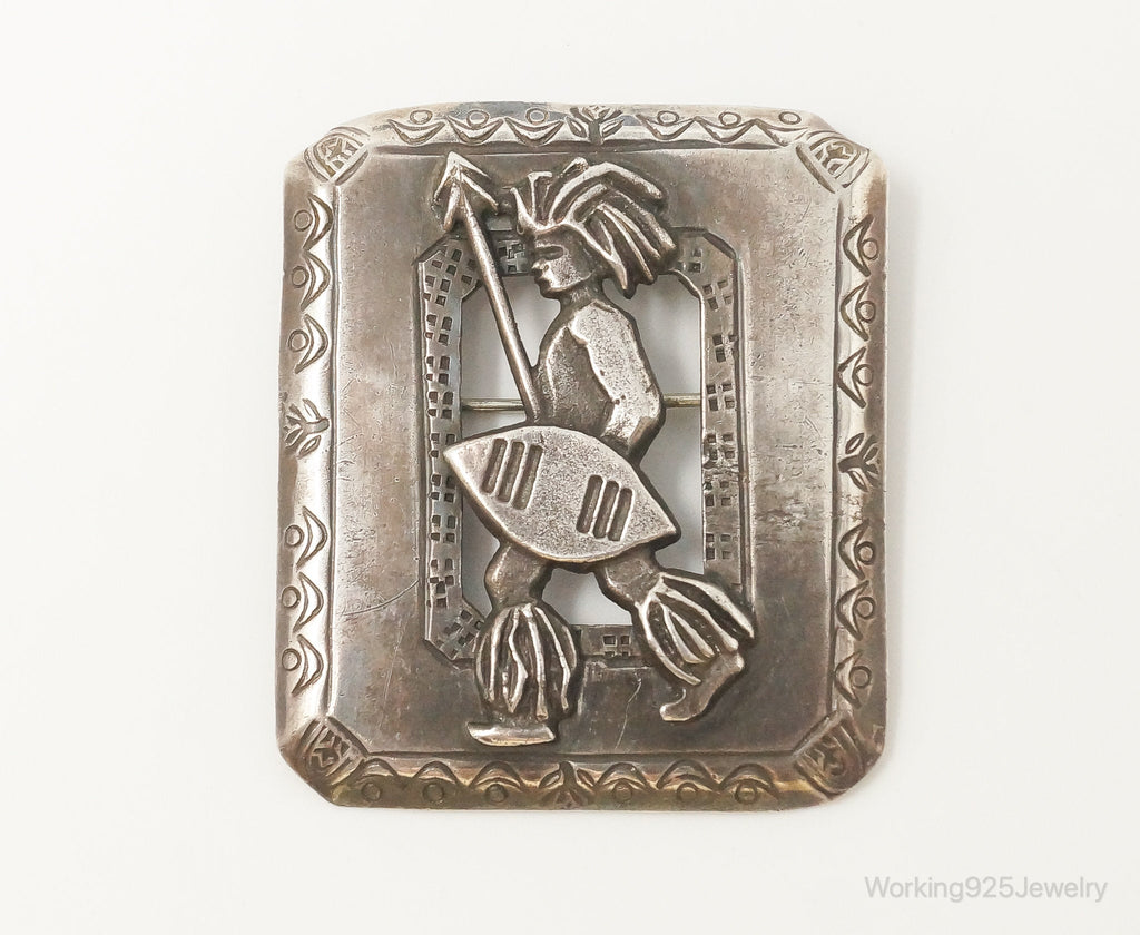 Vintage RARE Haglund 1950 South Africa Native Sterling Silver Brooch Pin