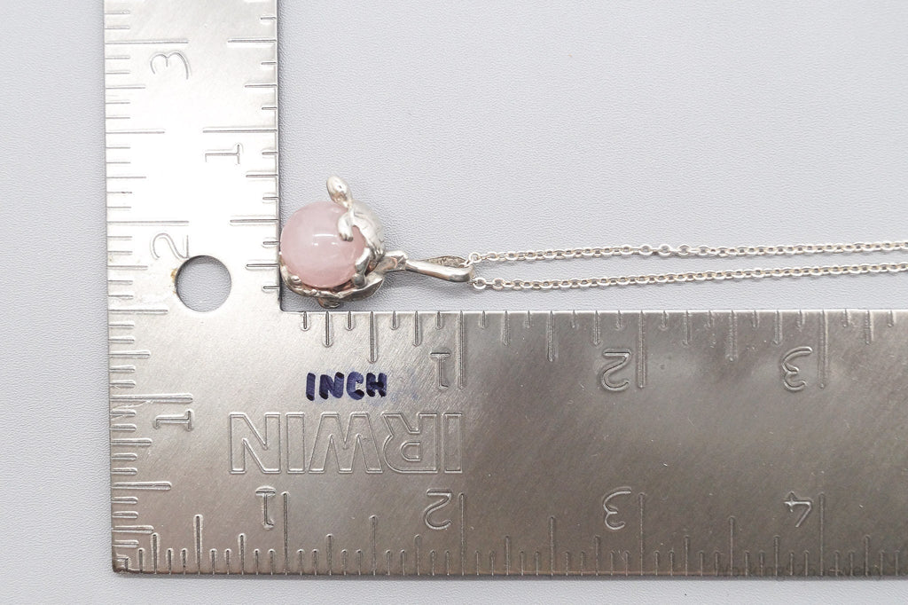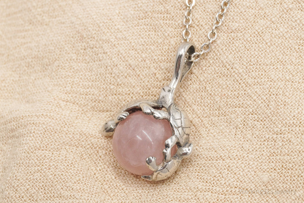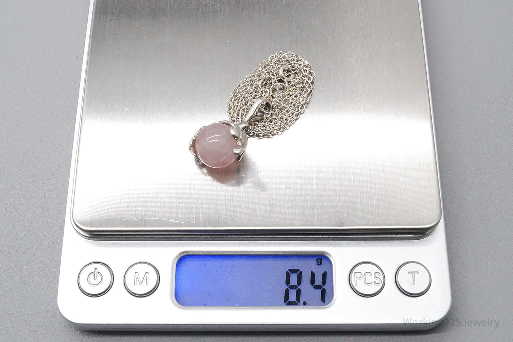 Vintage Sea Turtles & Rose Quartz Sterling Silver Necklace 20"