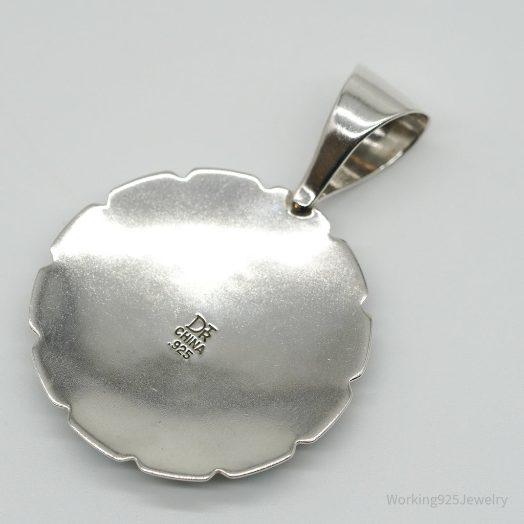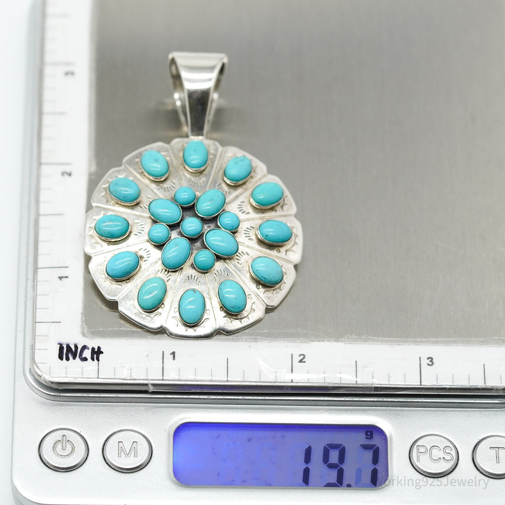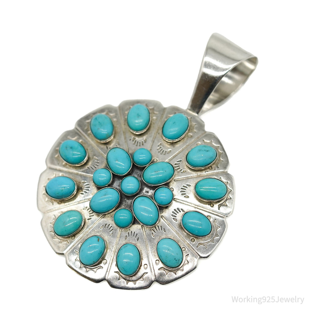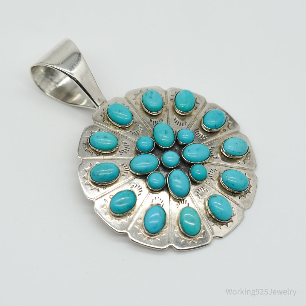 Vintage Southwest Desert Rose Trading Turquoise Sterling Silver Pendant 2.5"