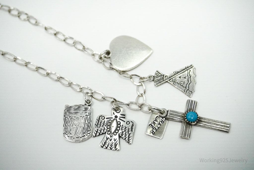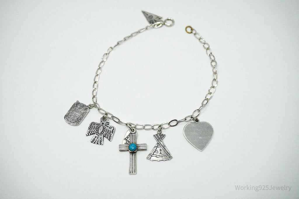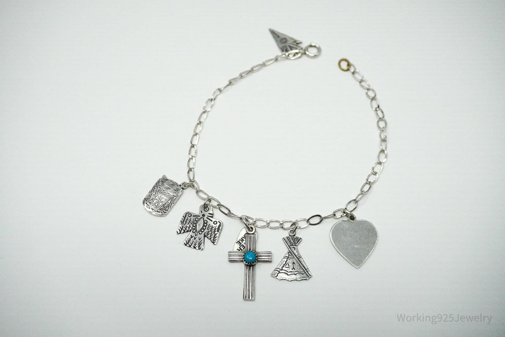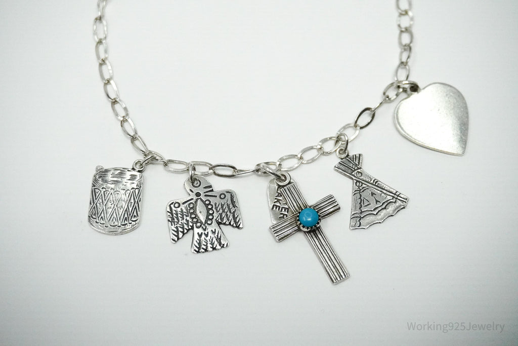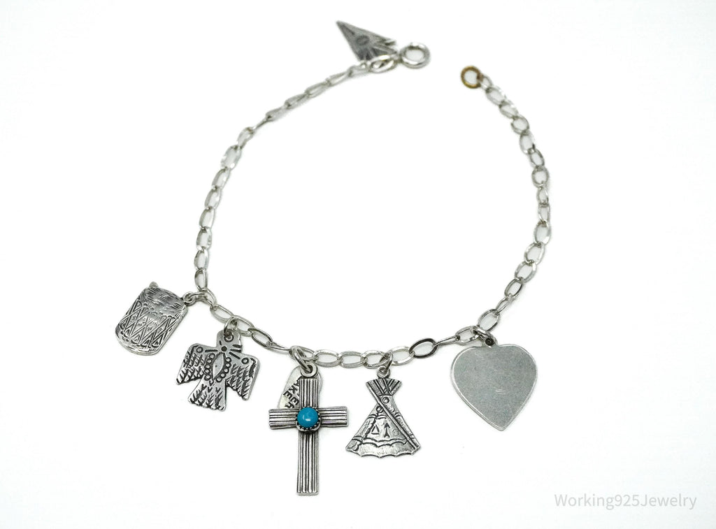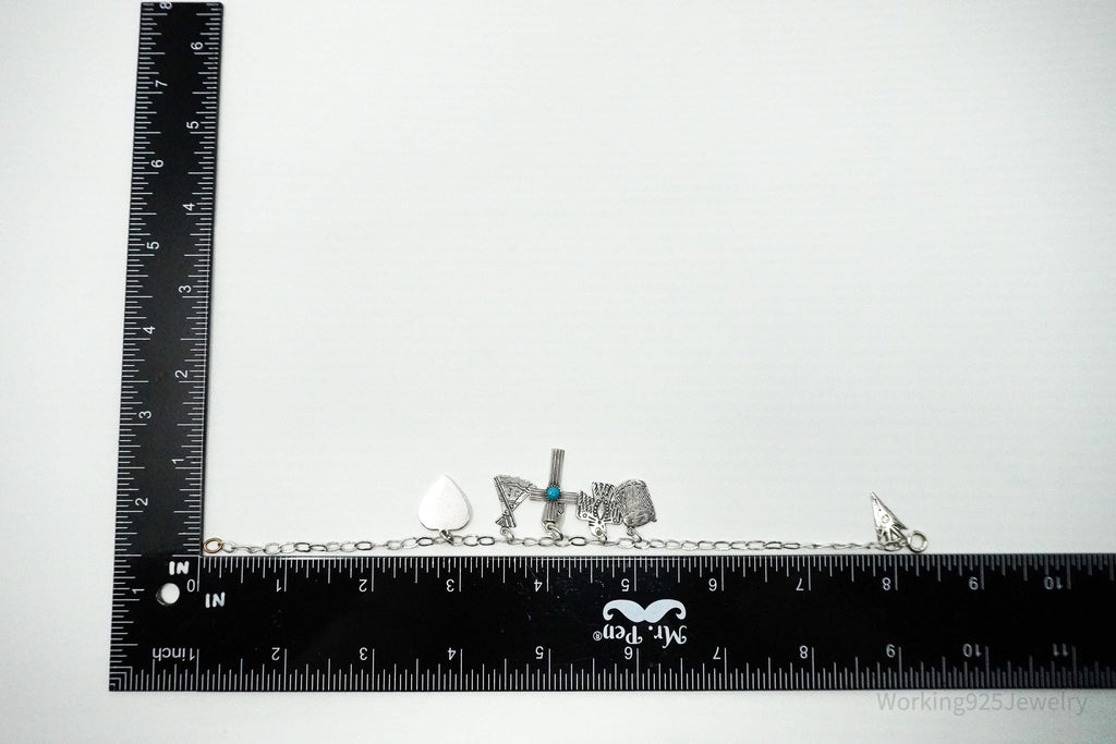 Vintage Southwestern Charms Sterling Silver Bracelet / Anklet 8 3/8"