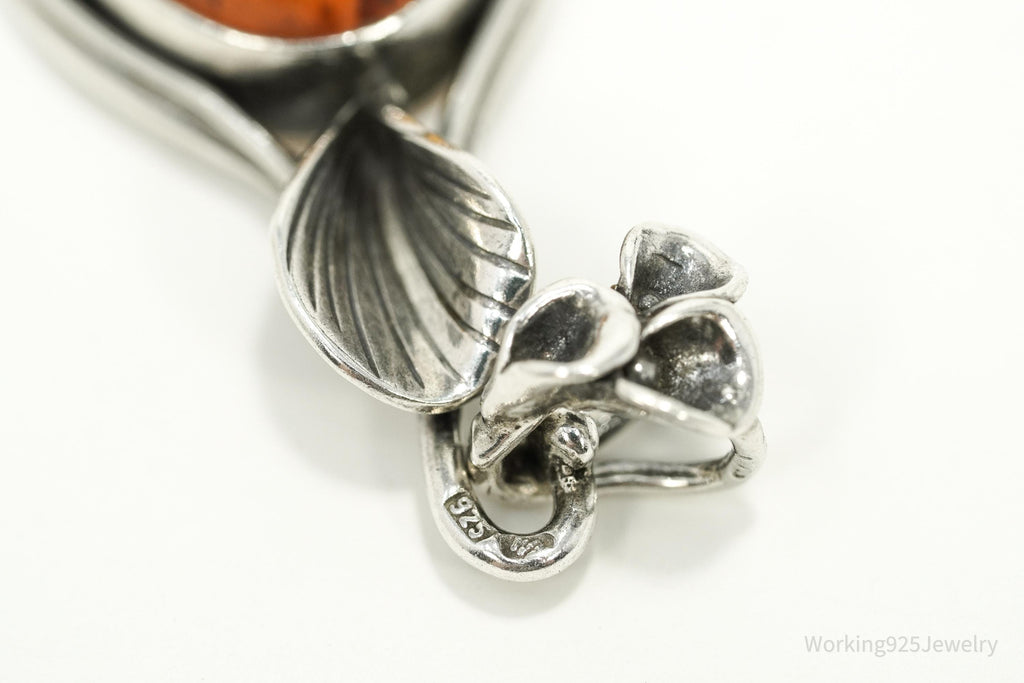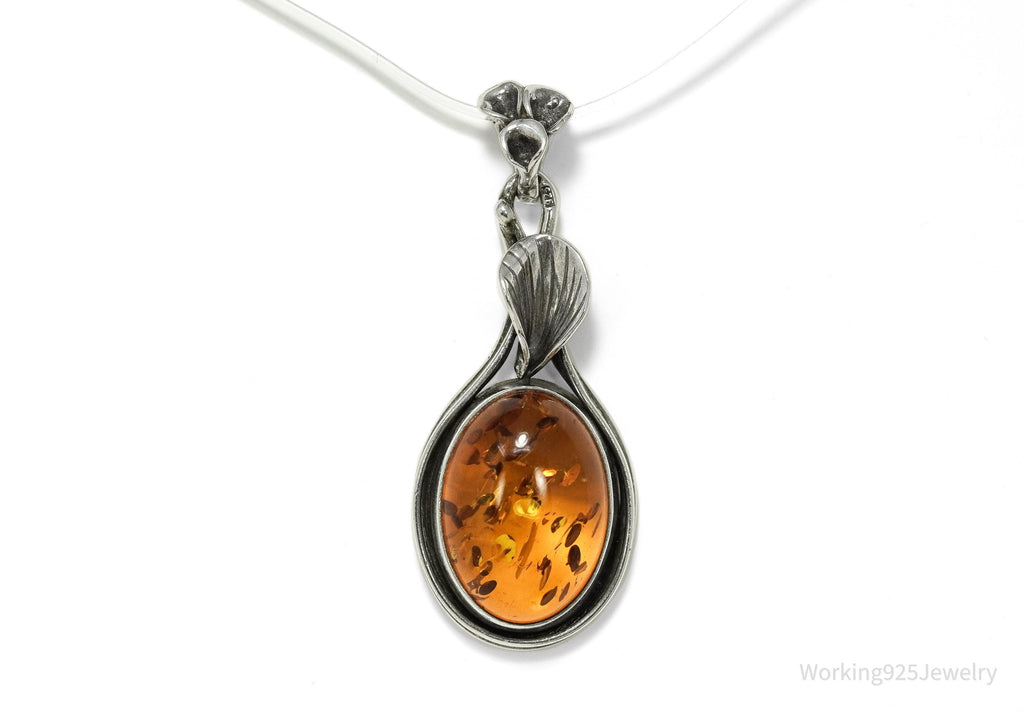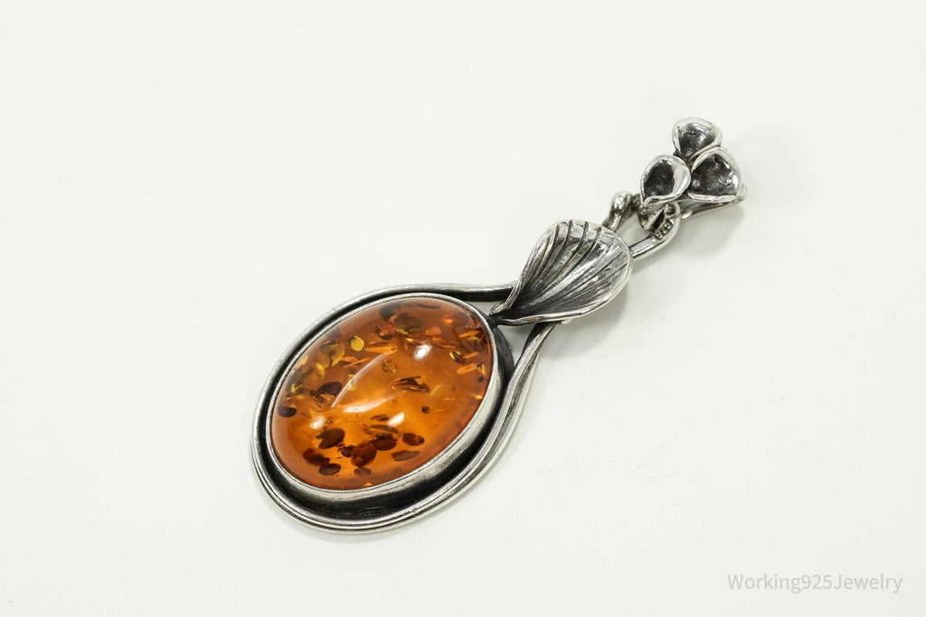 Vintage Amber Sterling Silver Pendant 1 5/8"
