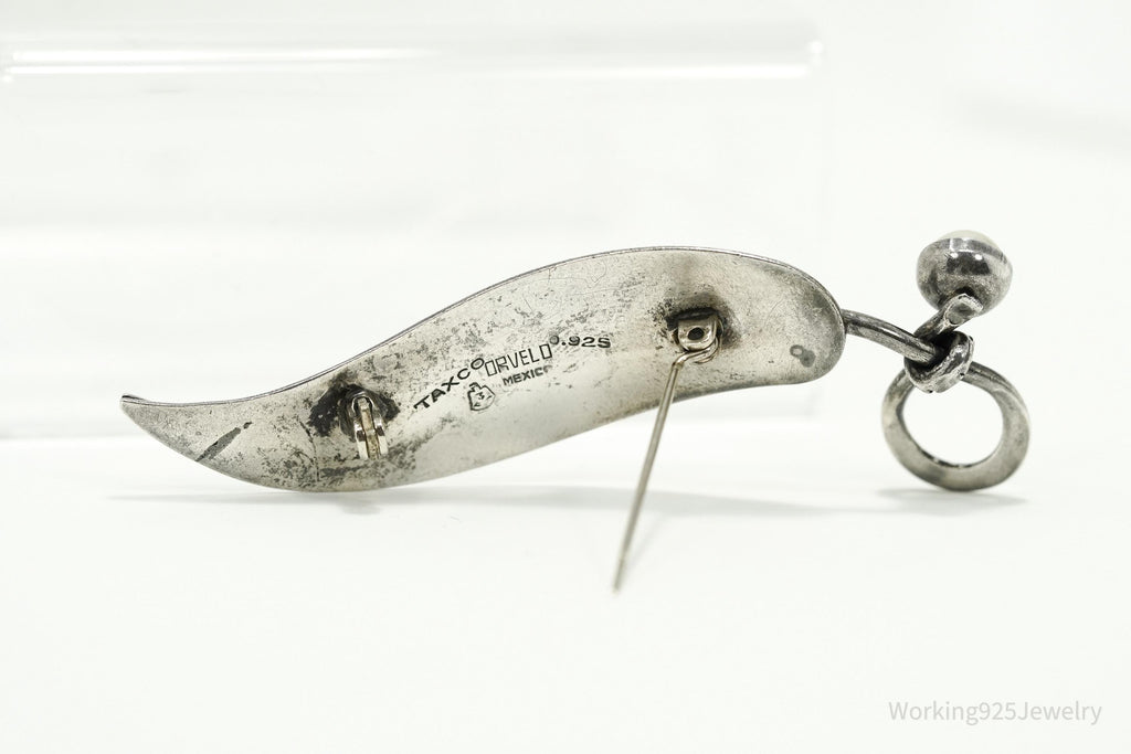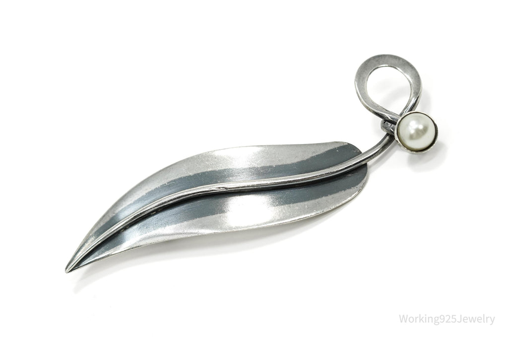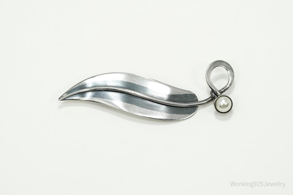 Vintage Taxco Artist Orvelo Pearl Modernist Leaf Sterling Silver Brooch Pin