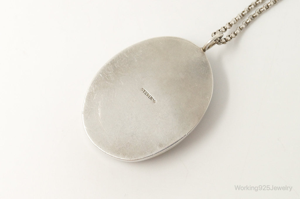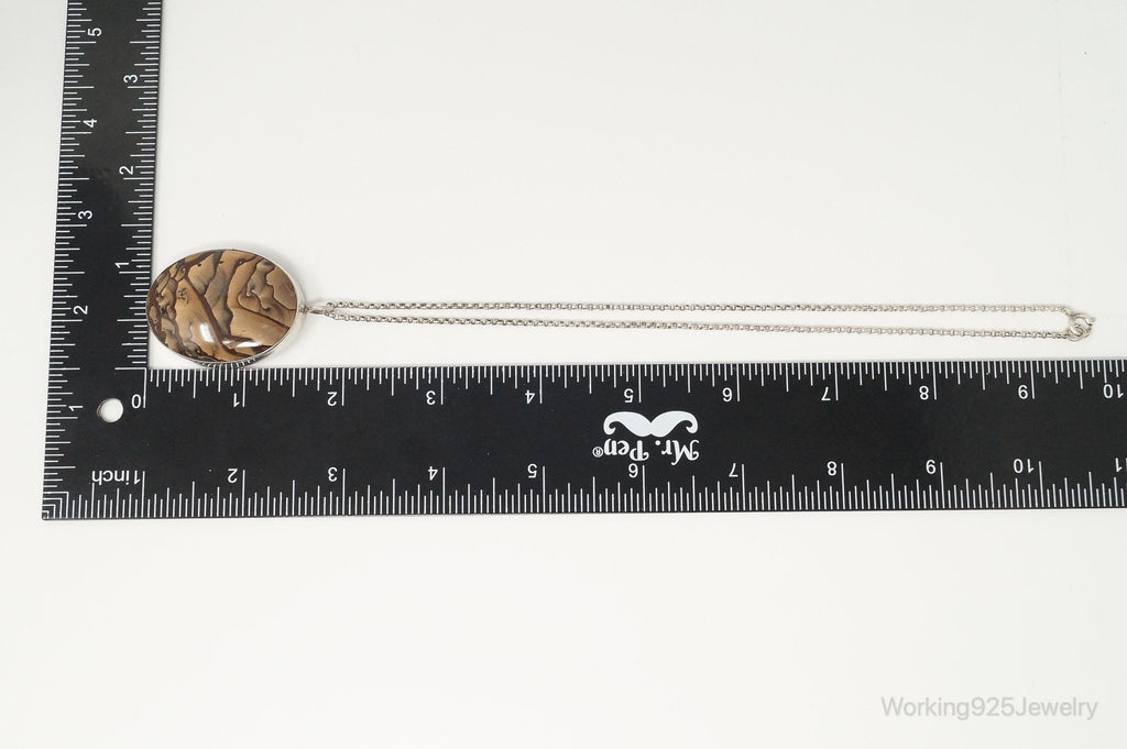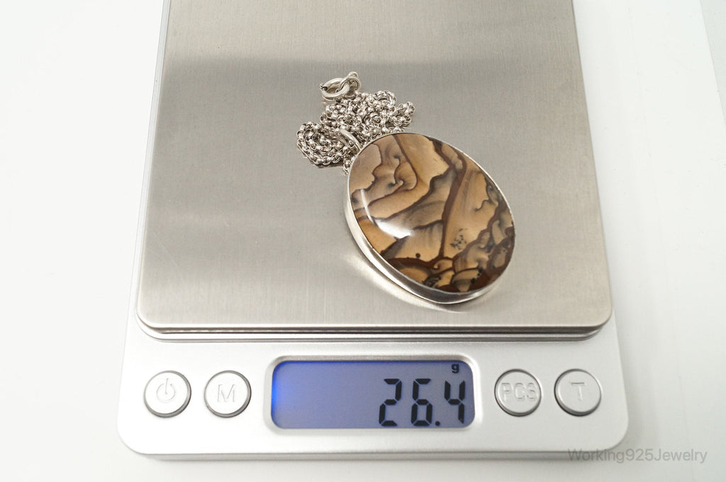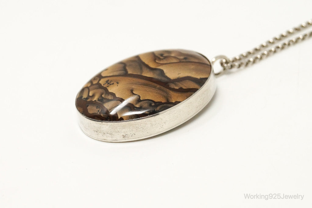 Vintage Unsigned Native American Large Picture Jasper Sterling Silver Necklace