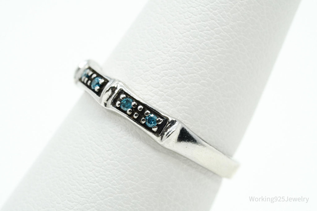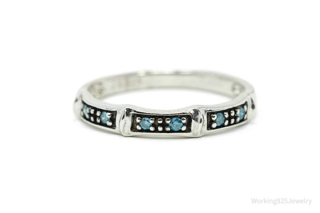 VTG Designer JS Blue Diamond Sterling Silver Ring - Size 6