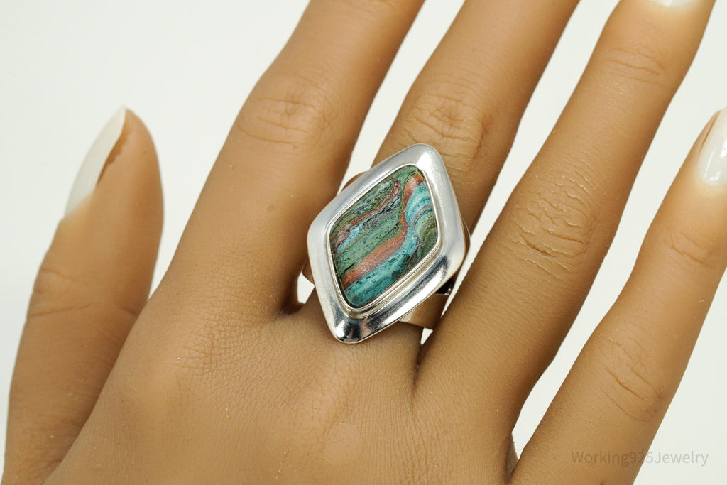 VTG Jay King Desert Rose Trading Rainbow Calsilica Sterling Silver Ring - Size 10
