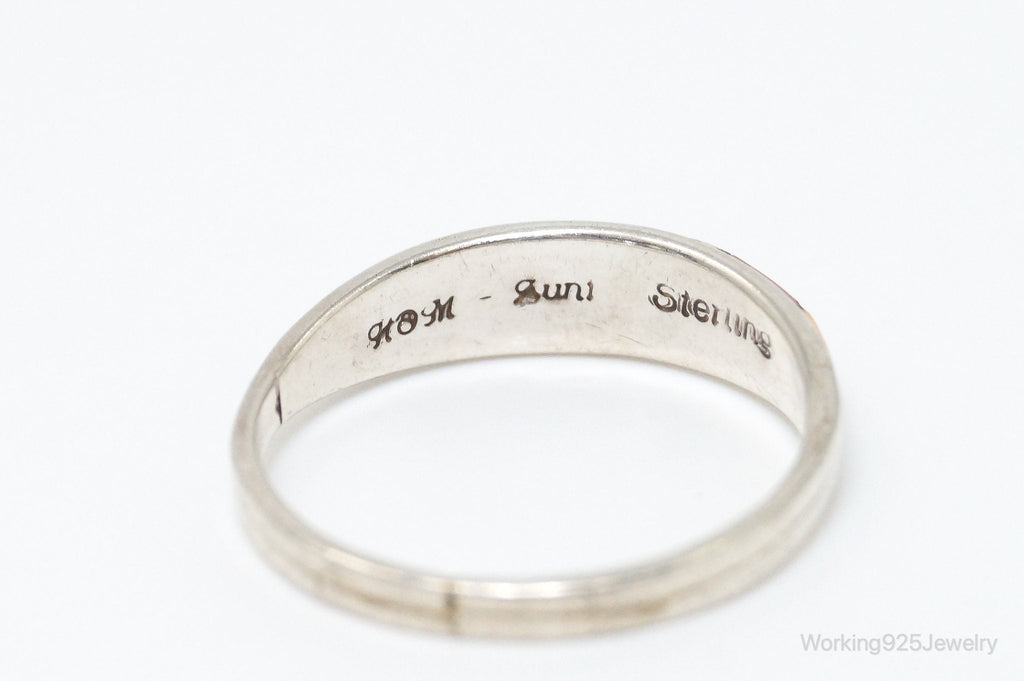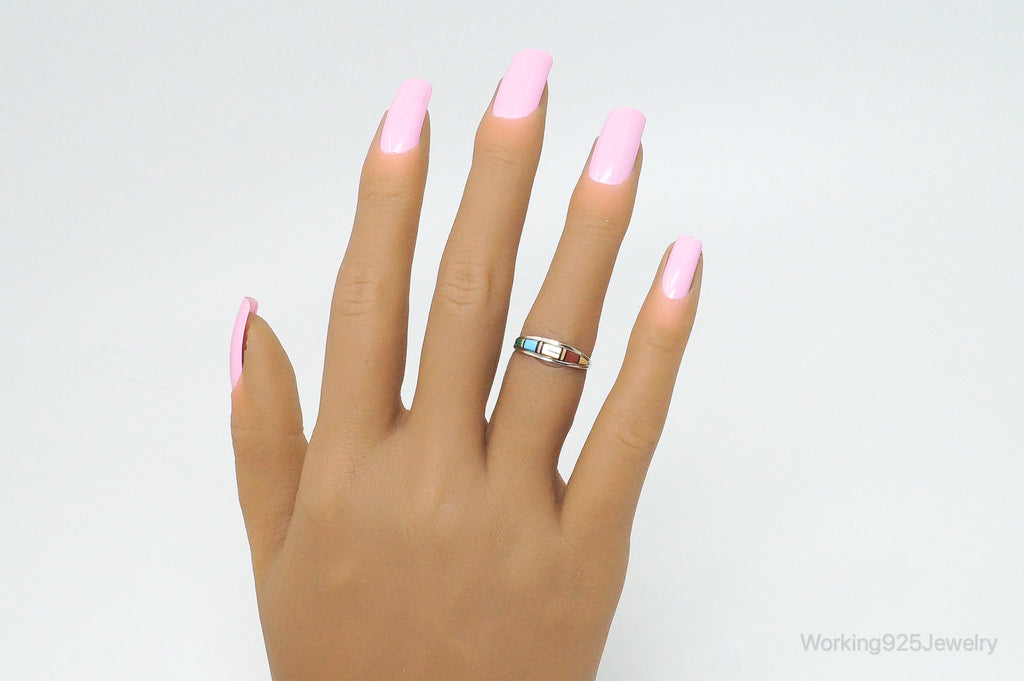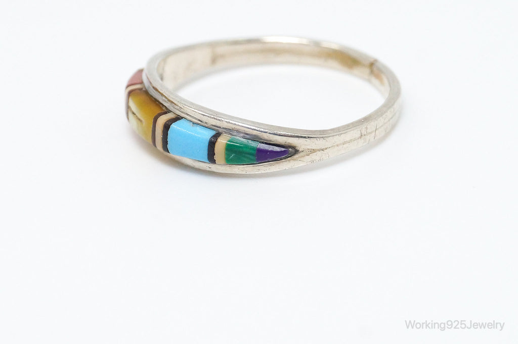 VTG Native American Handmade Multi Gem Inlay Sterling Silver Ring - SZ 5.5