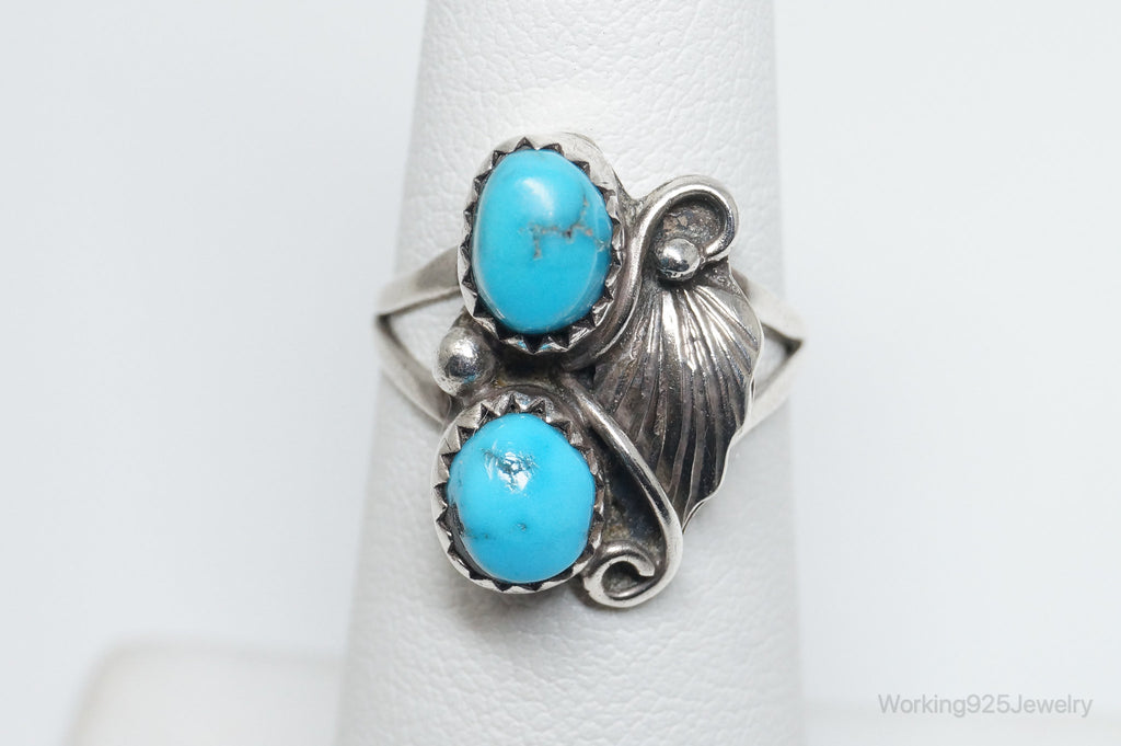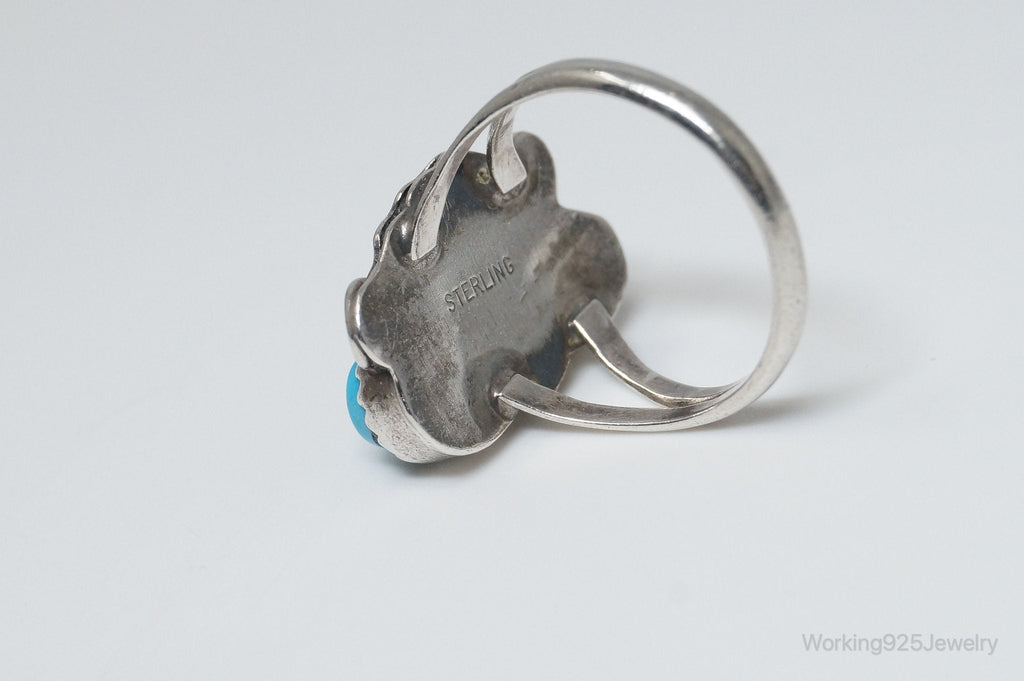 Vtg Native American Turquoise Unsigned Sterling Silver Ring - SZ 5.25