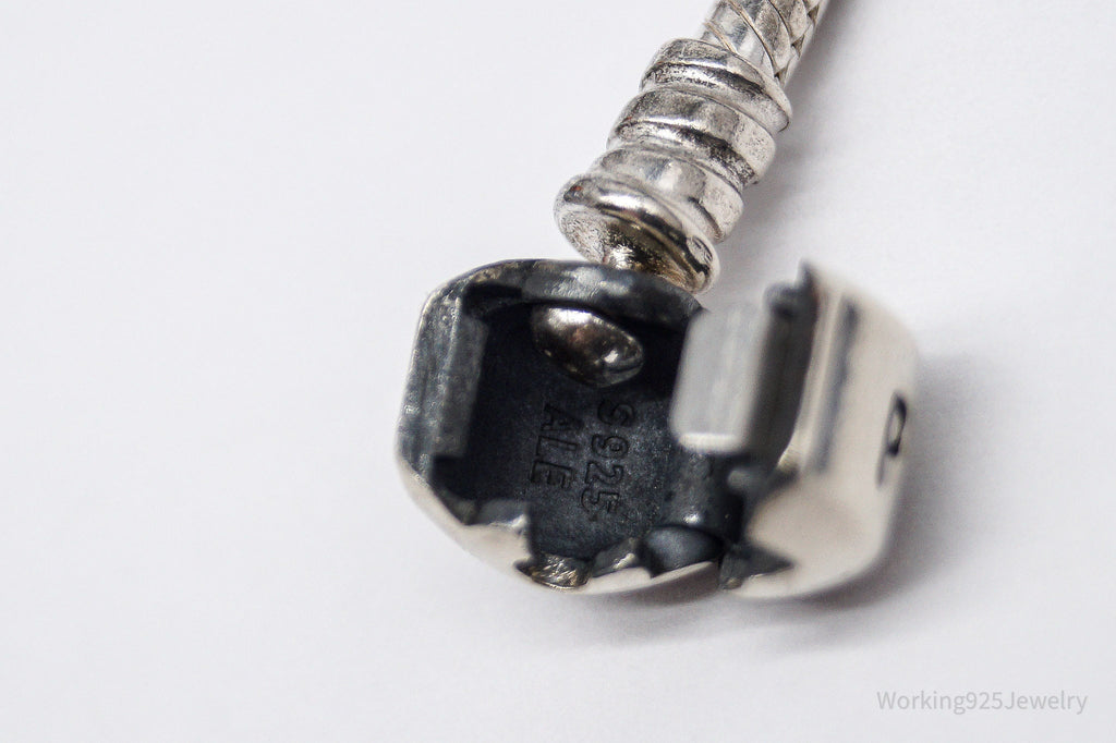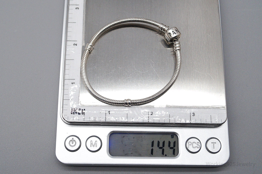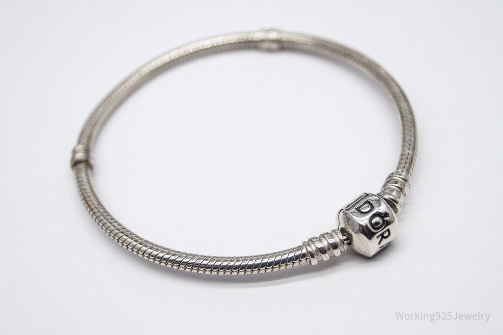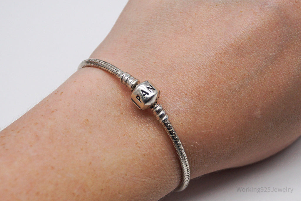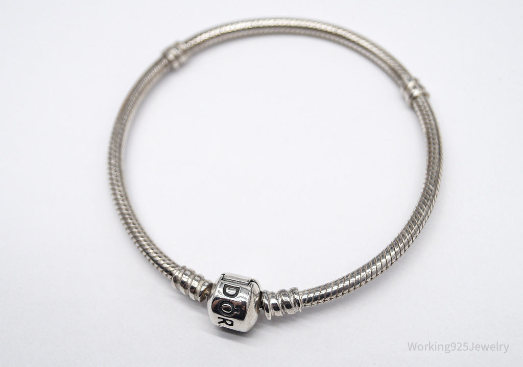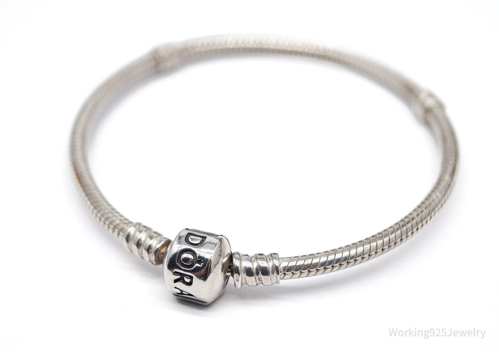 VTG Pandora Iconic Pandora Logo Sterling Silver Clasp Charm Bracelet 7 1/8"