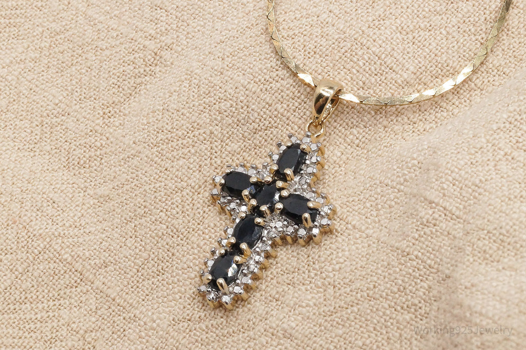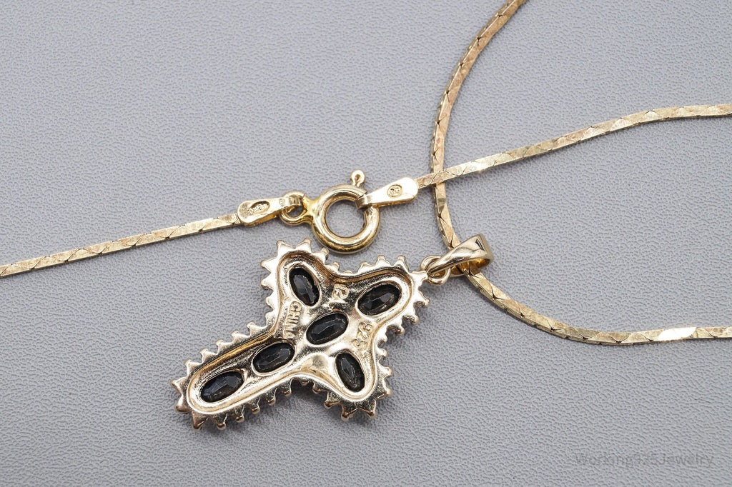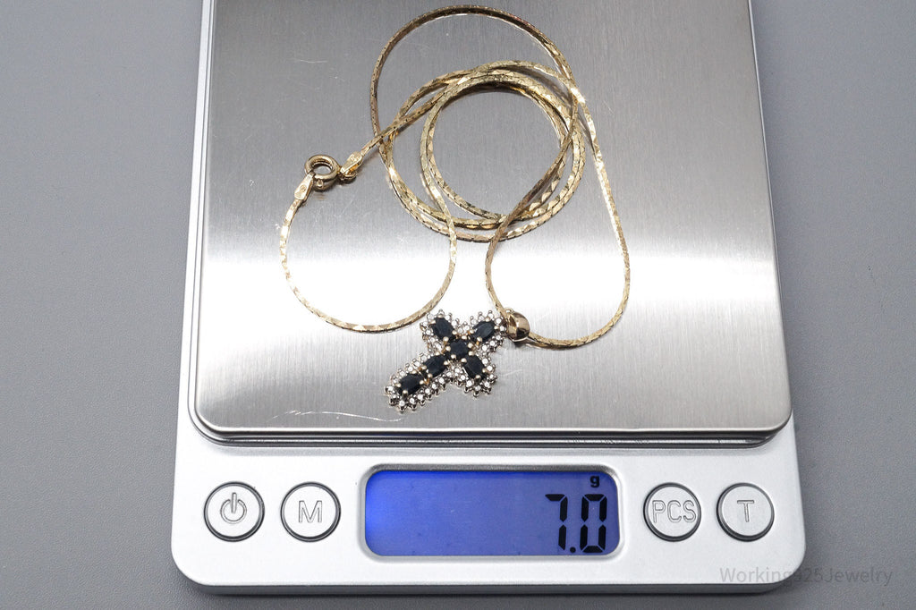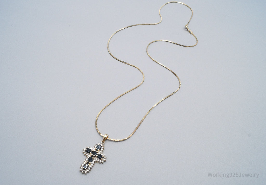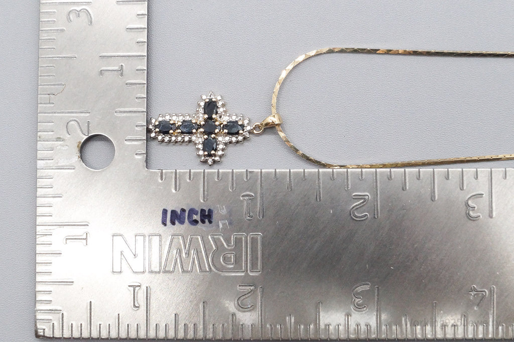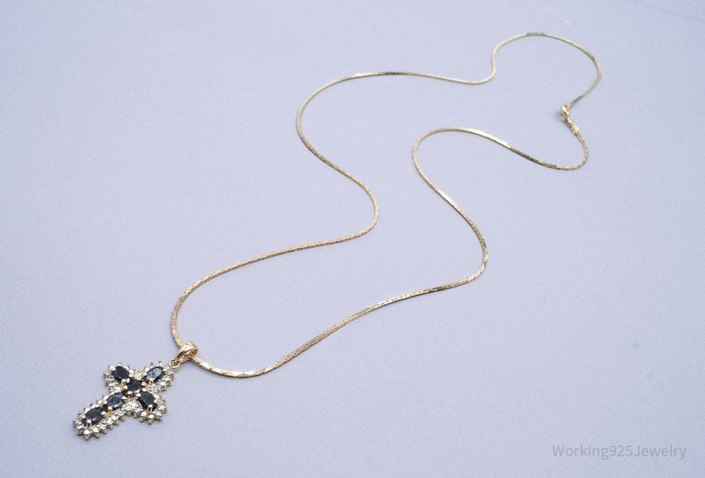 VTG Ross Simons Sapphires Cross Gold Over Sterling Silver Necklace 22"