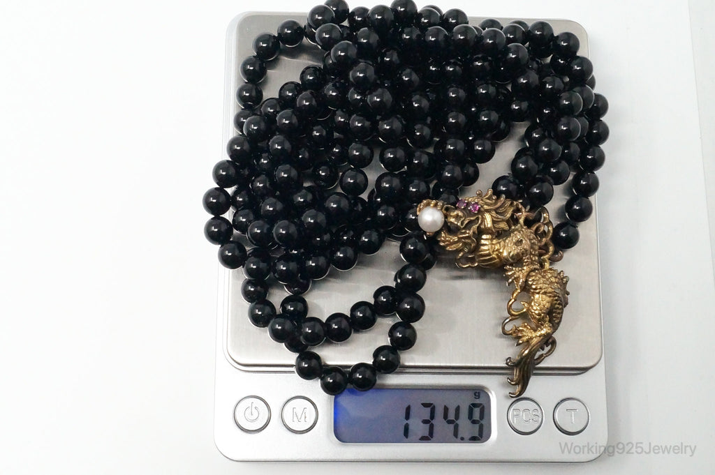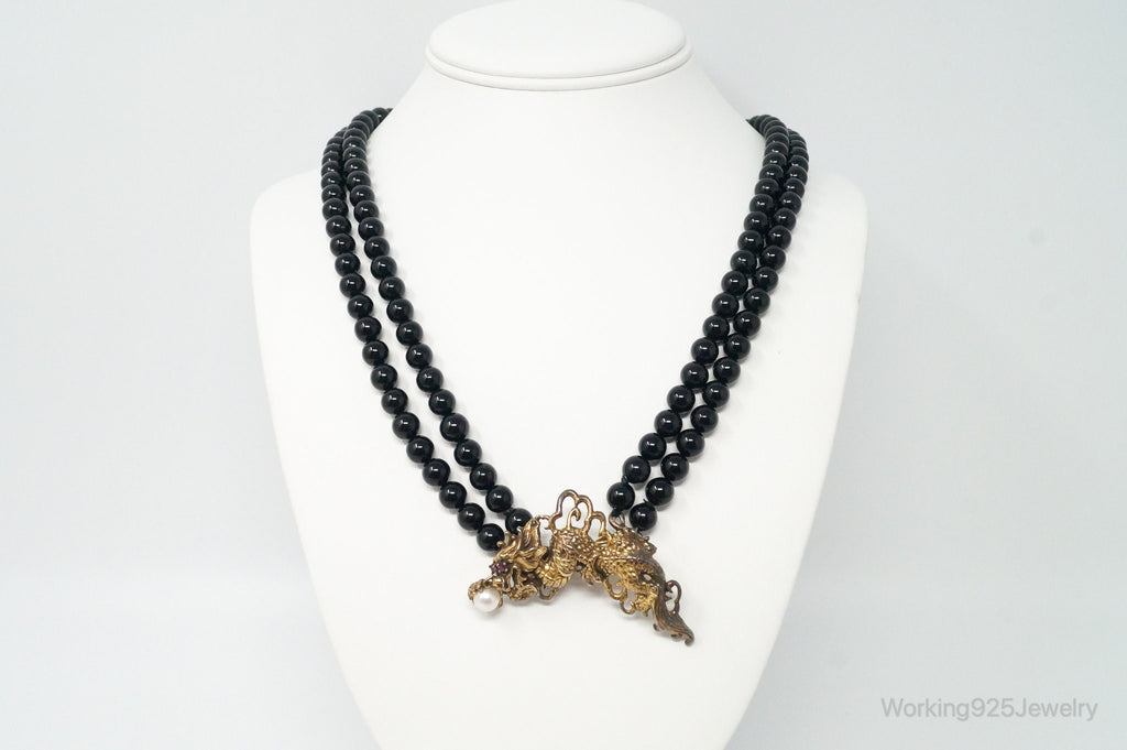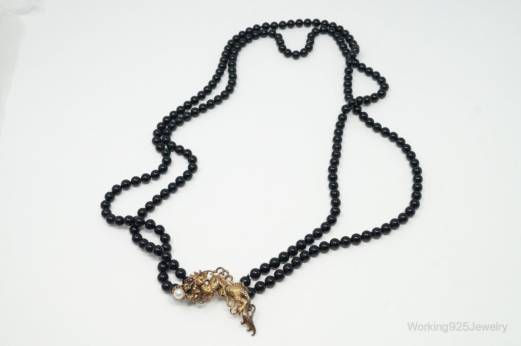 1987 Franklin Mint Year Of The Dragon Gold Vermeil Sterling Silver Pin Necklace