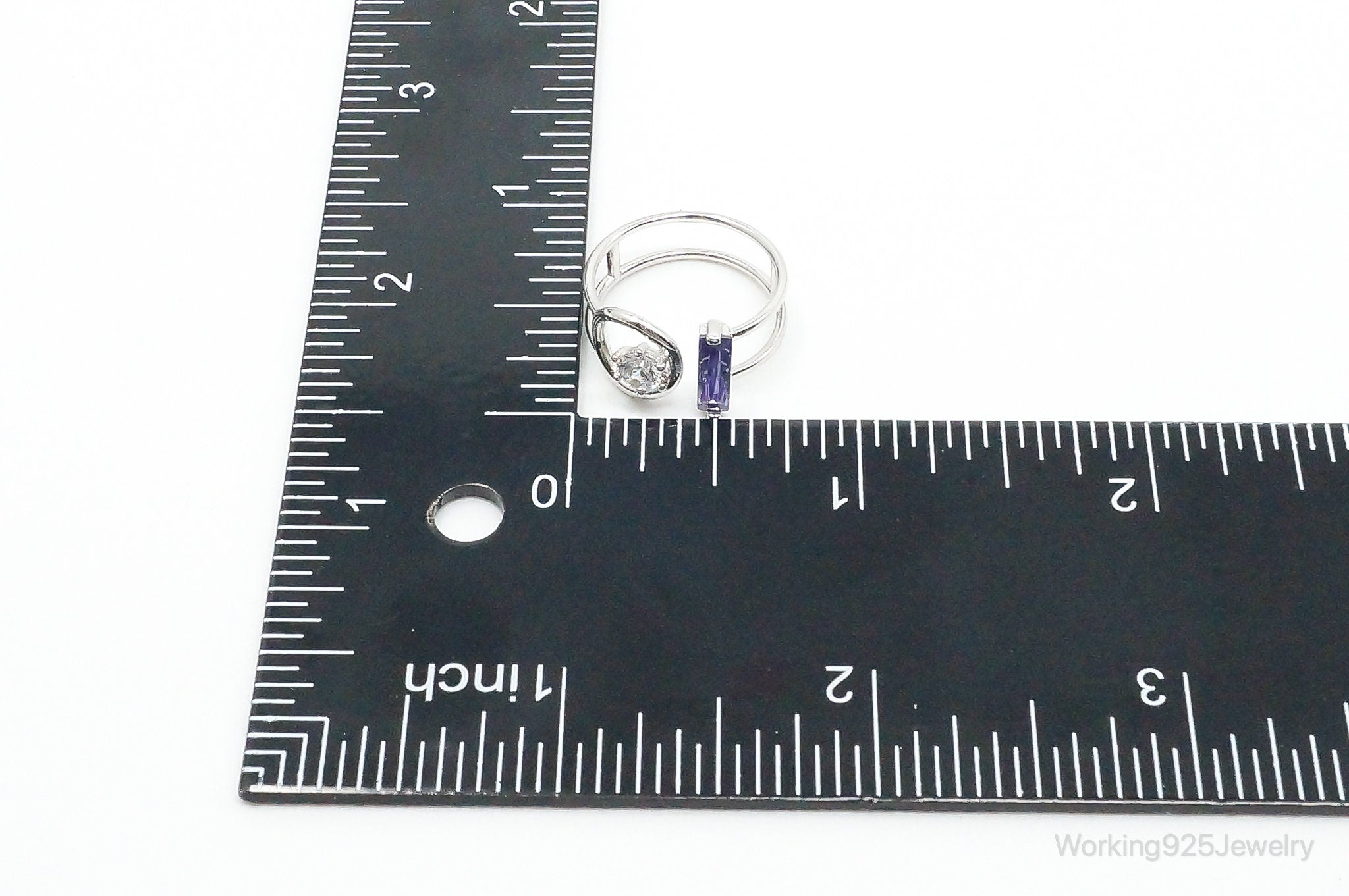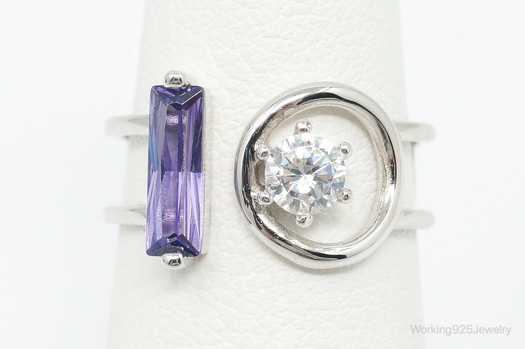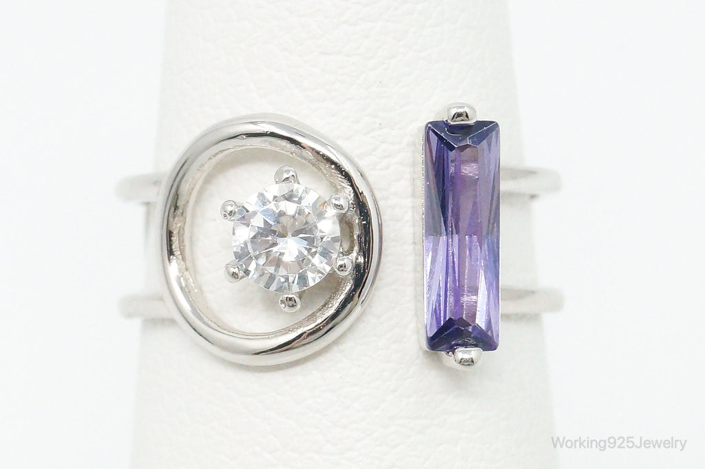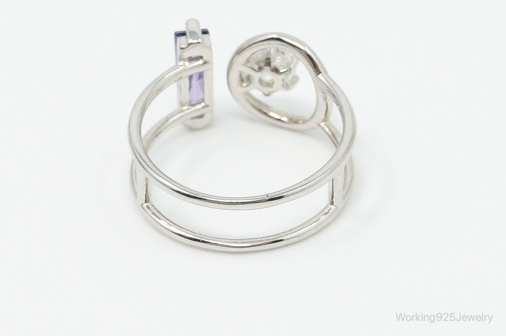 Amethyst Cubic Zirconia Sterling Silver Ring - Size 6.5 Adjustable
