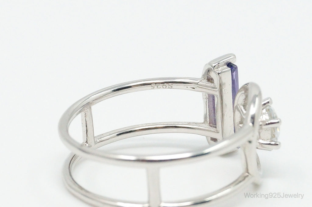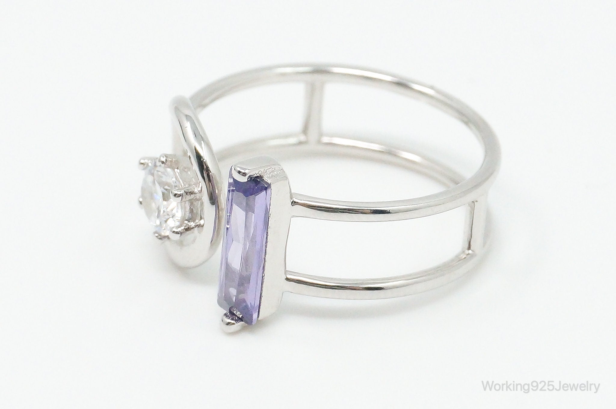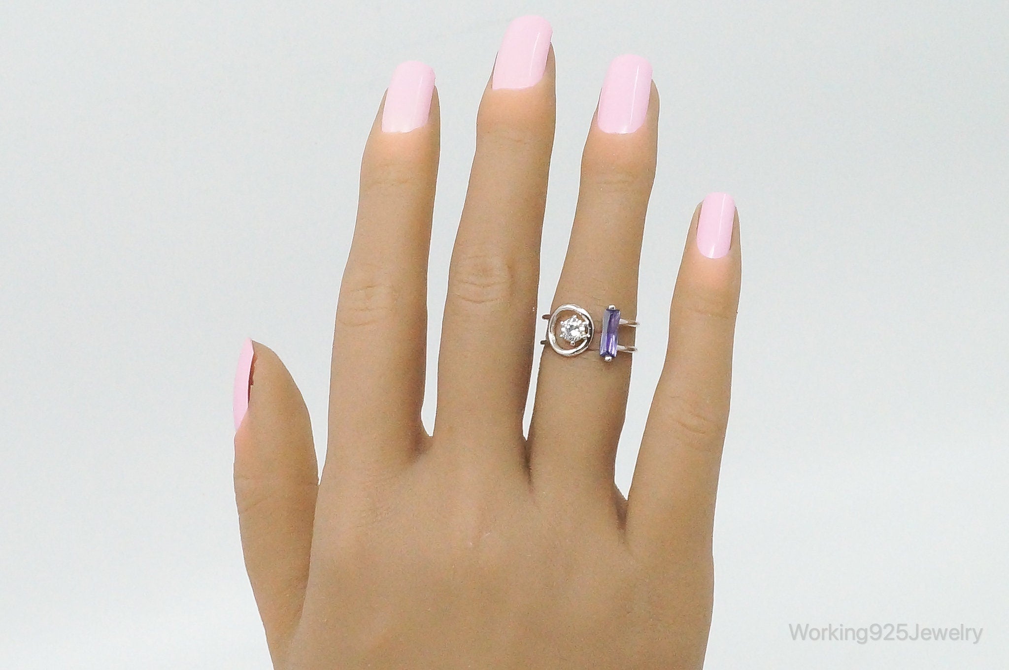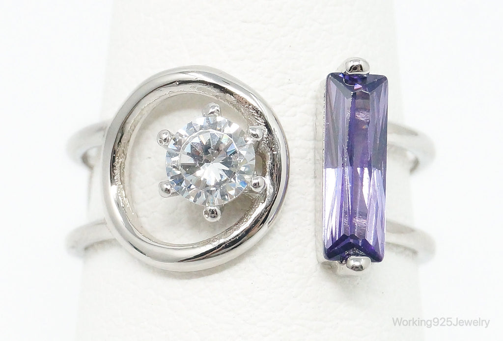 Amethyst Cubic Zirconia Sterling Silver Ring - Size 6.5 Adjustable